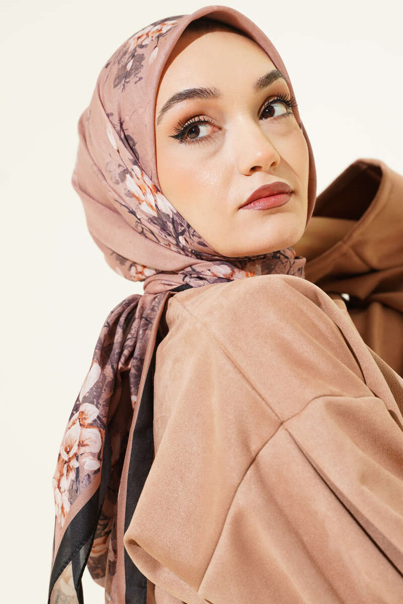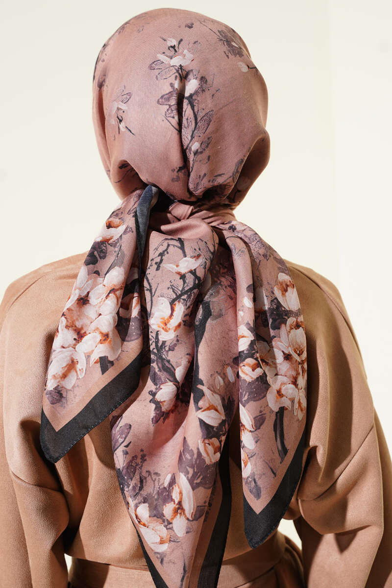 120 cm Floral Soft Scarf Black Latte (0778-1626-713351)