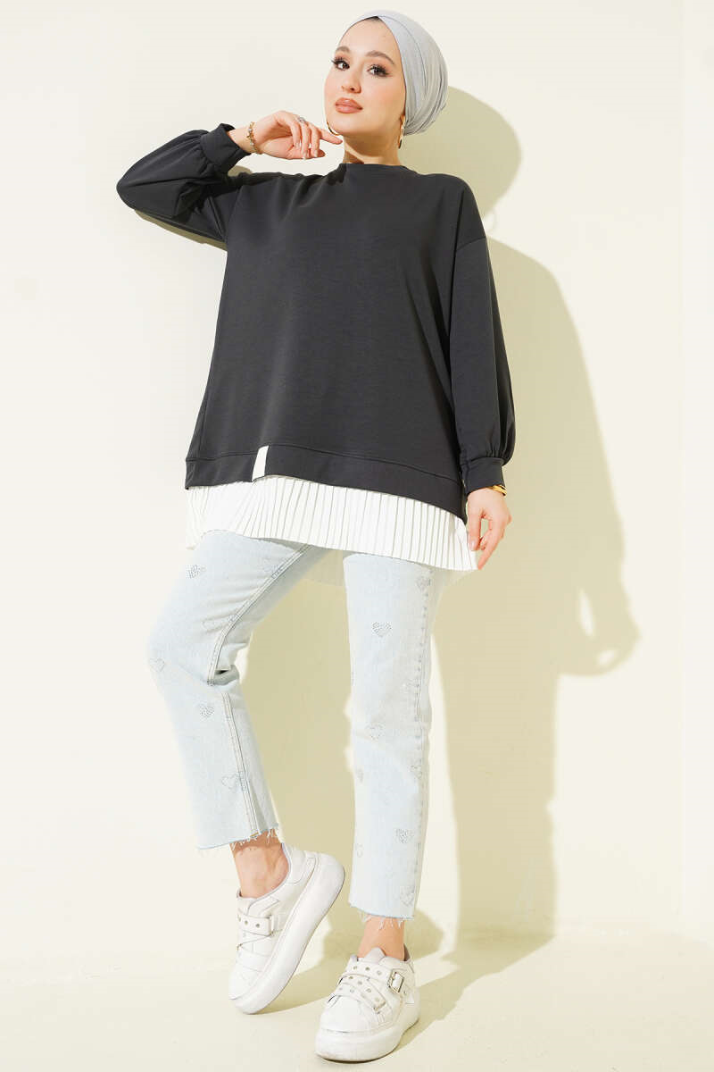 Bottom Pleated Loisha Tunic Anthracite (0997-1158-710389)