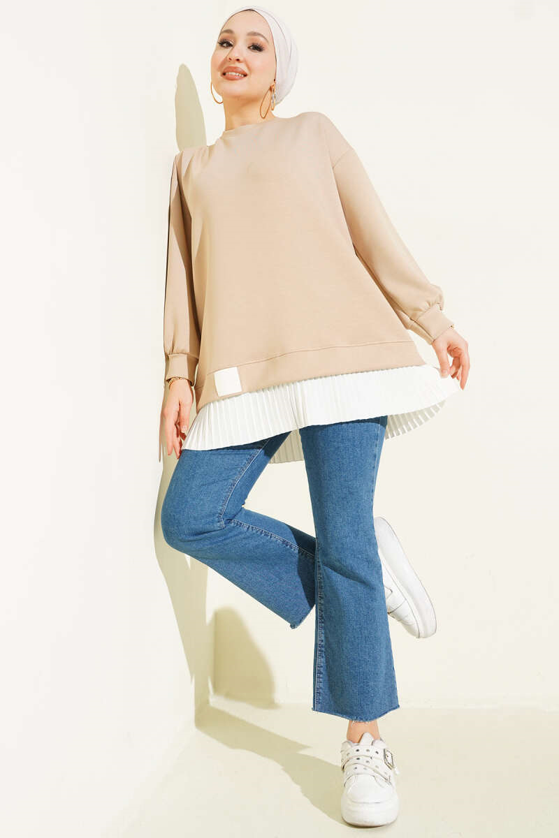 Beige Pleated Loisha Tunic (0997-1158-710392)
