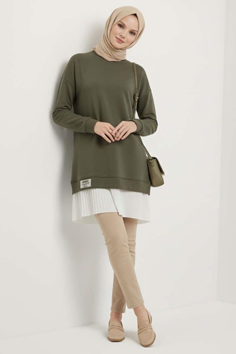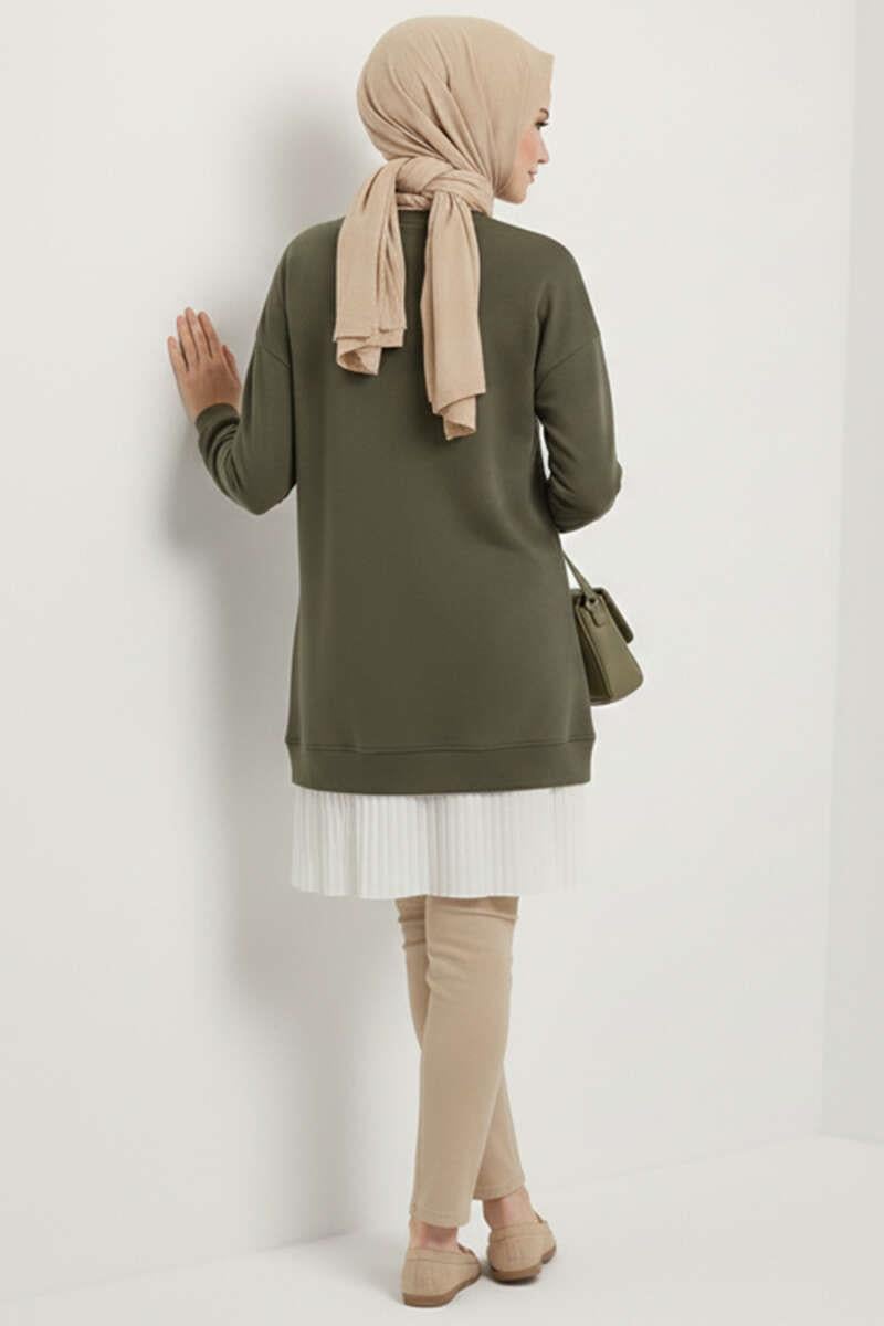 Pleated Tunic with Emblem and Bottom Skirt, Khaki