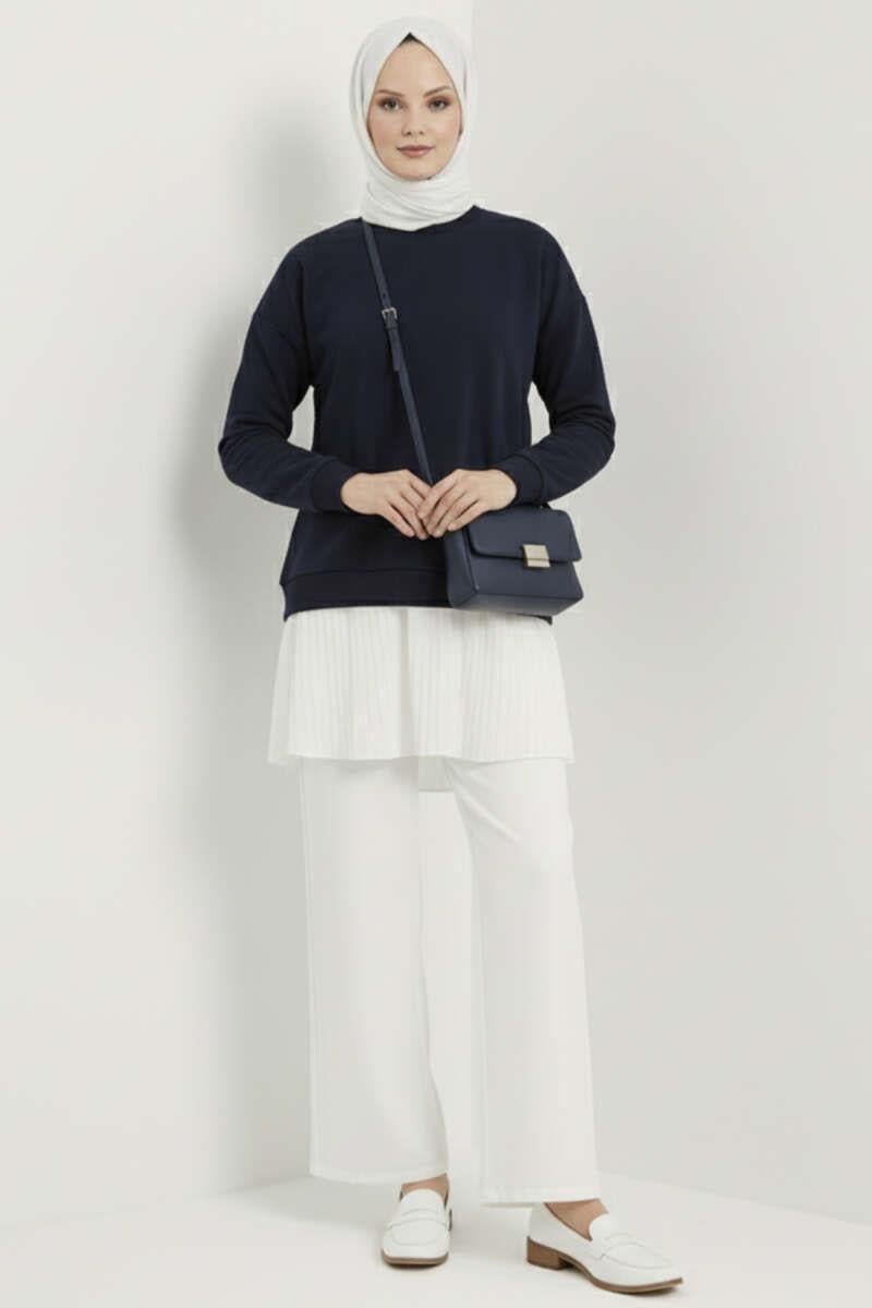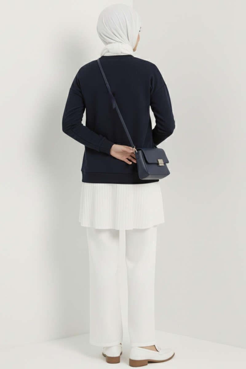 Navy Blue Tunic with Pleated Lower Skirt and Emblem