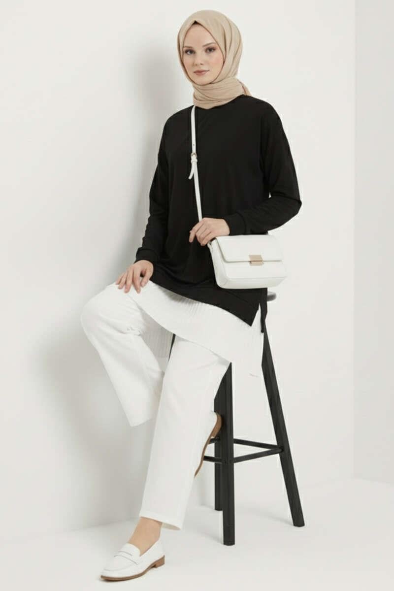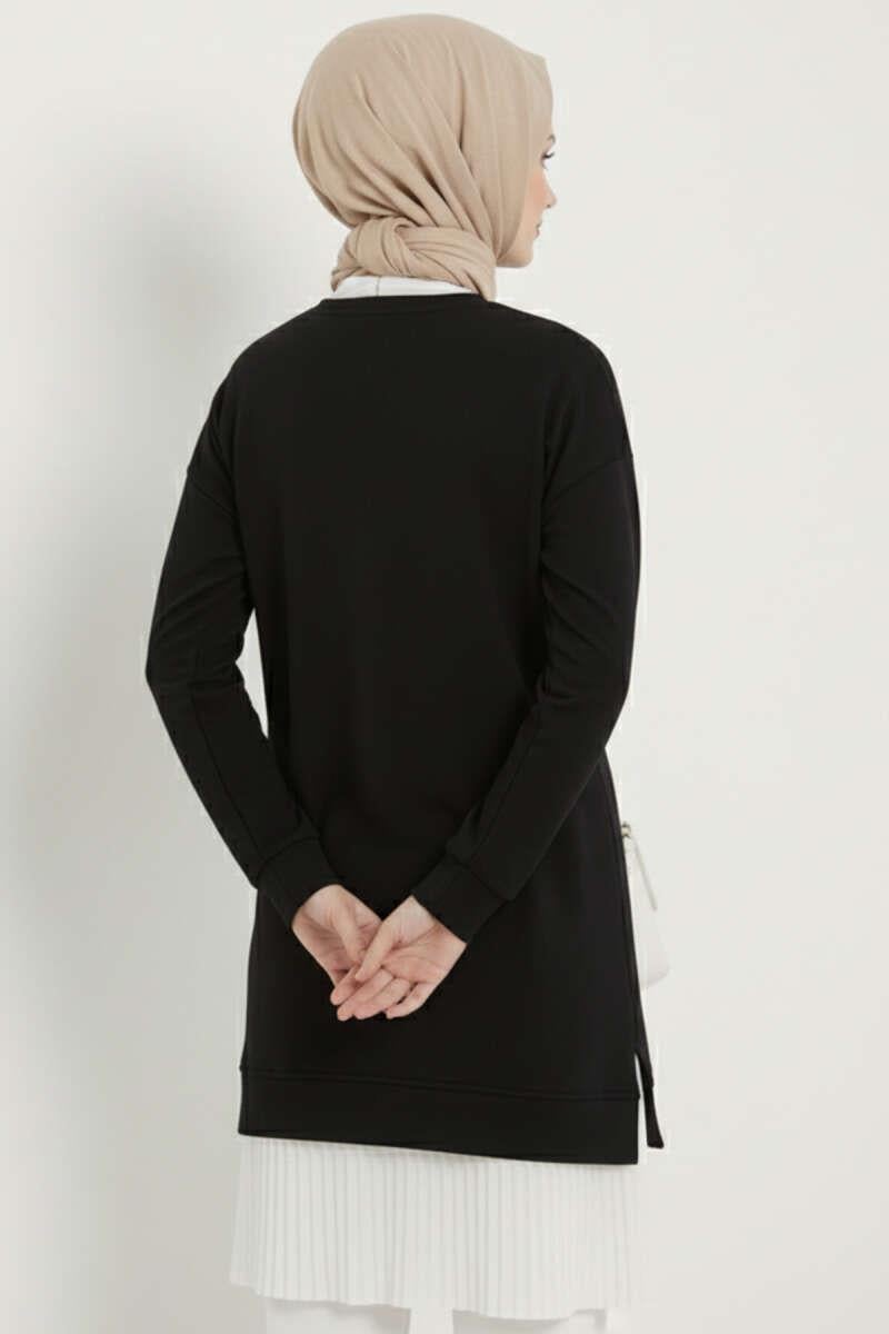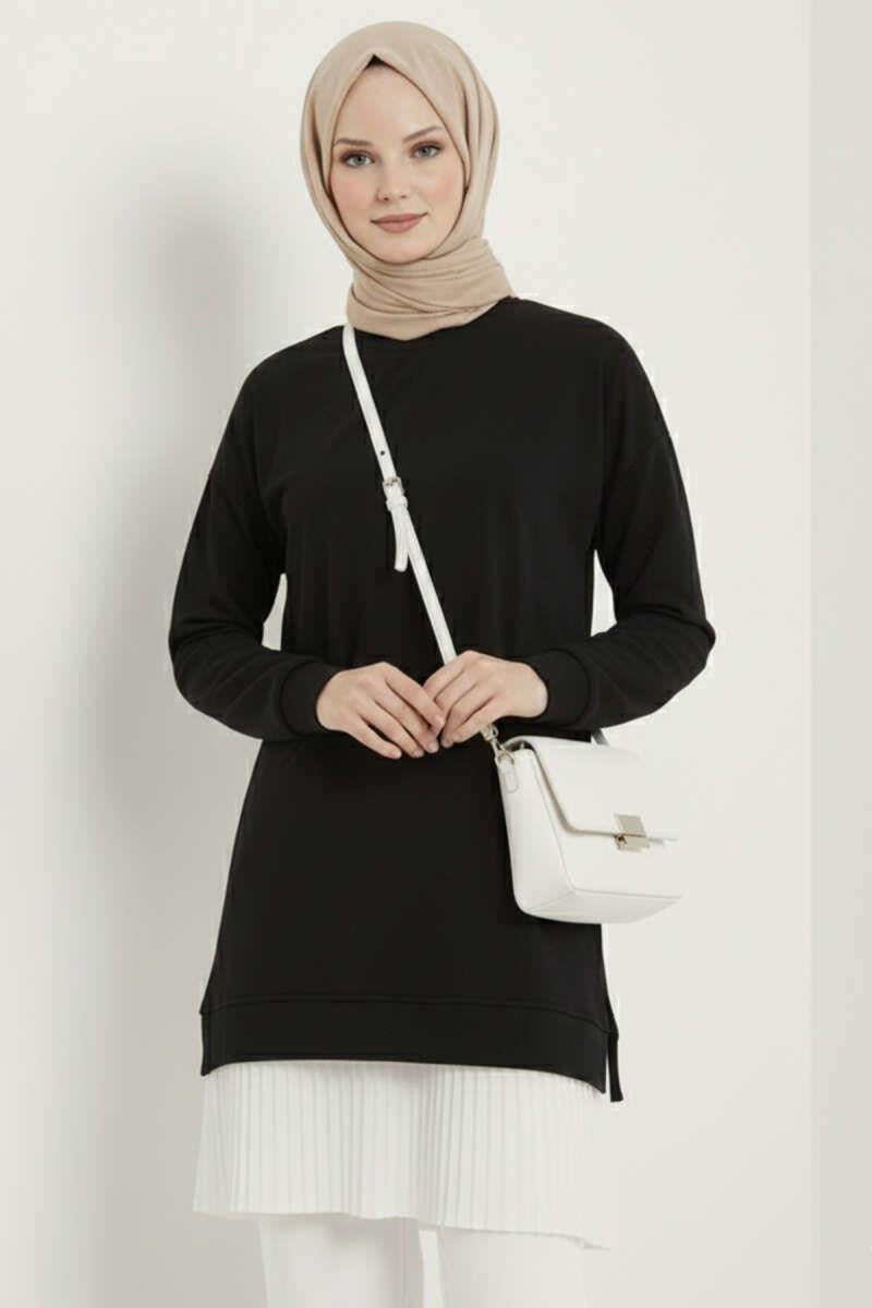 Pleated Tunic with Emblem and Lower Skirt, Black
