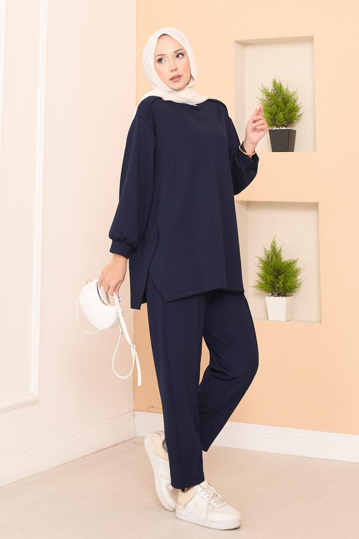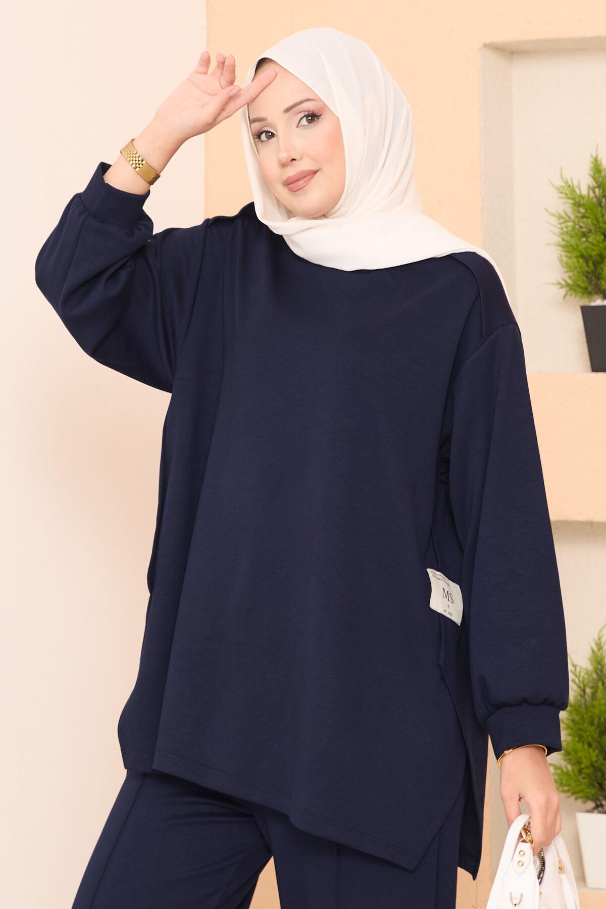 Asymmetrical Slit Emblem Detailed Loysha 2 Piece Set Navy Blue (125M00621189R33L)