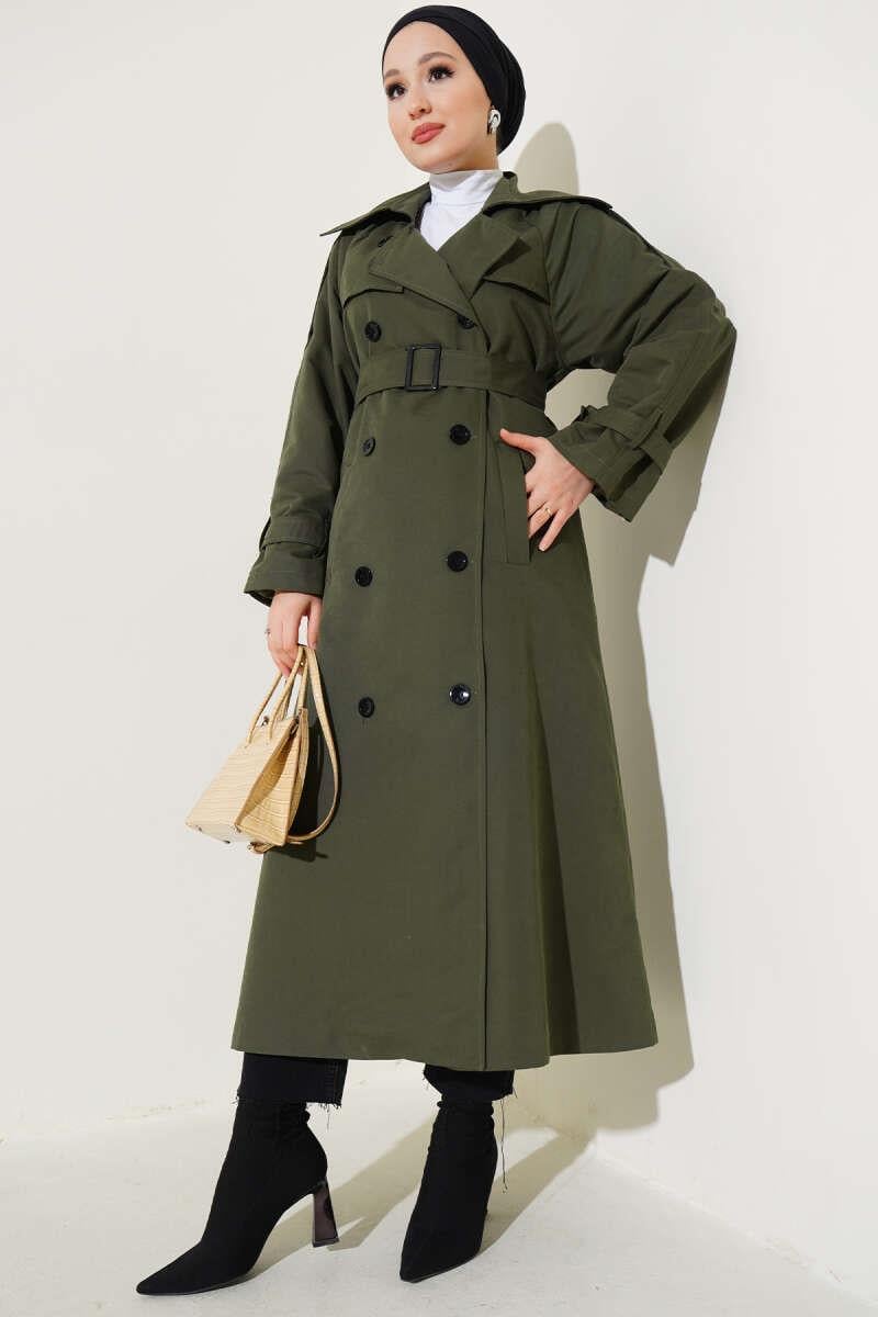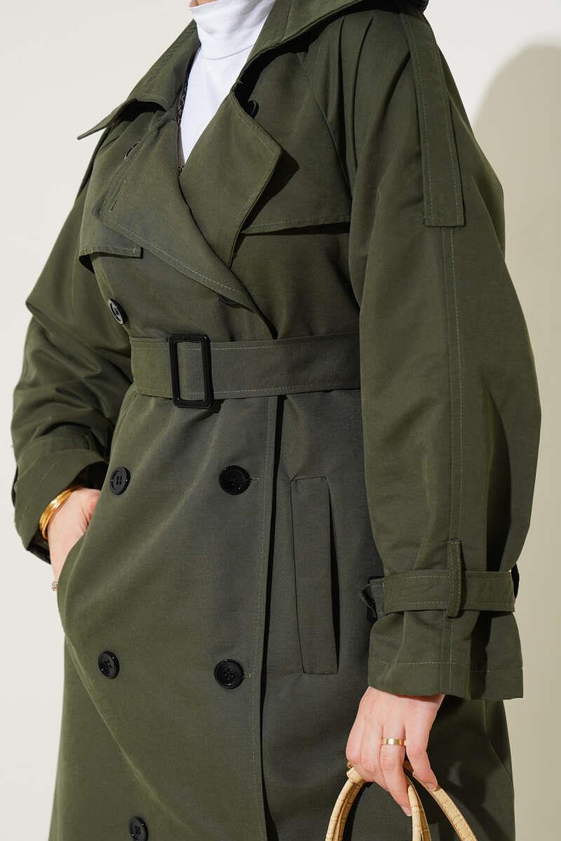 Lined Belted Long Trench Coat Khaki (0945-8005-577126)