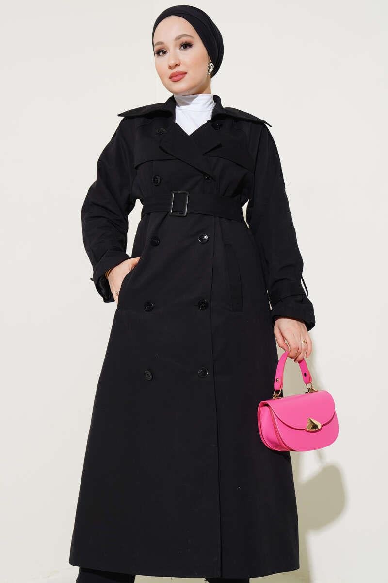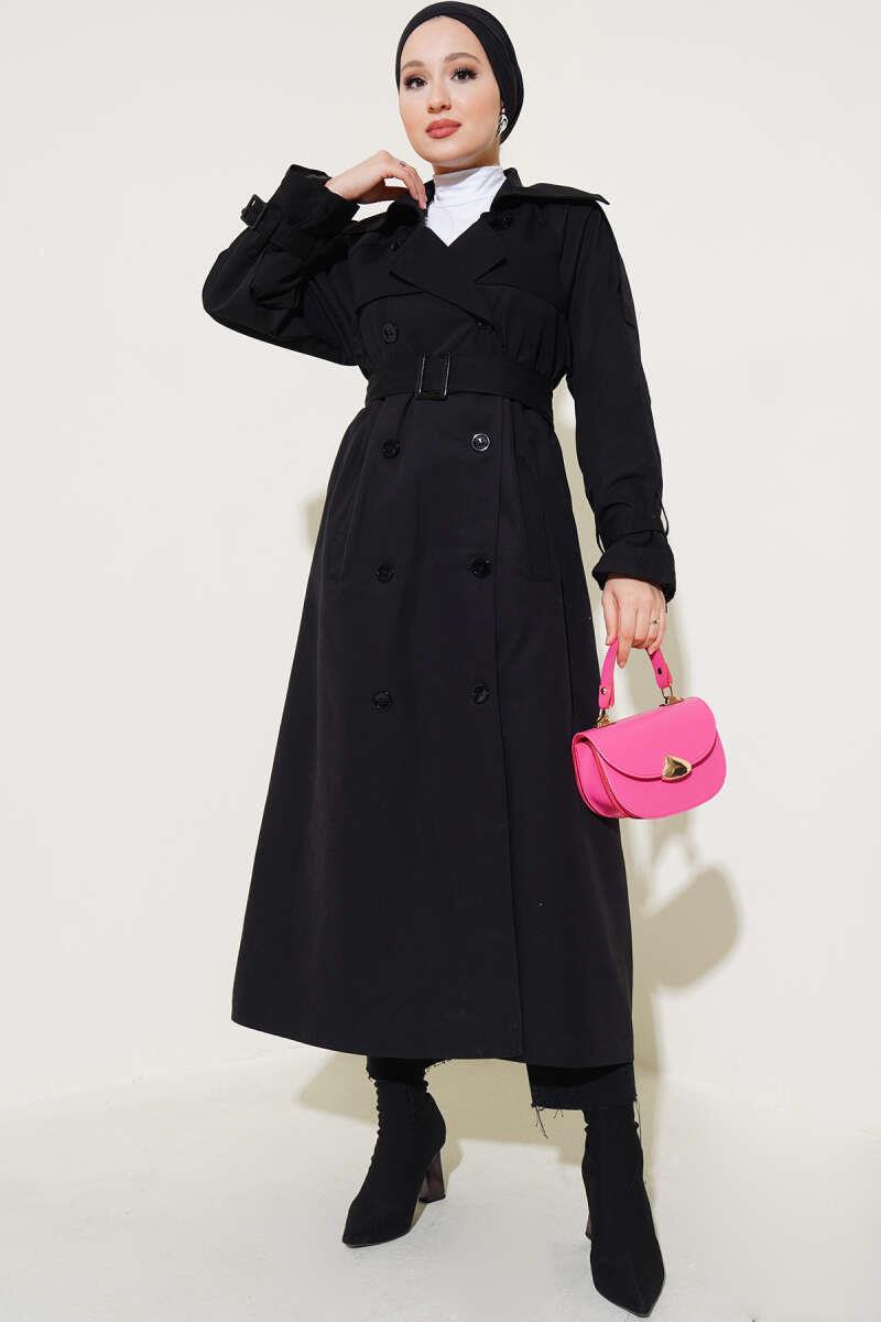 Lined Belted Long Trench Coat Black (0945-8005-577130)
