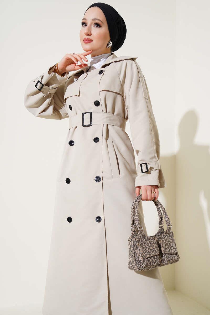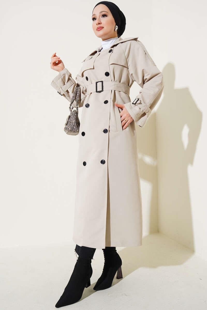 Lined Belted Long Trench Coat Stone (0945-8005-577134)