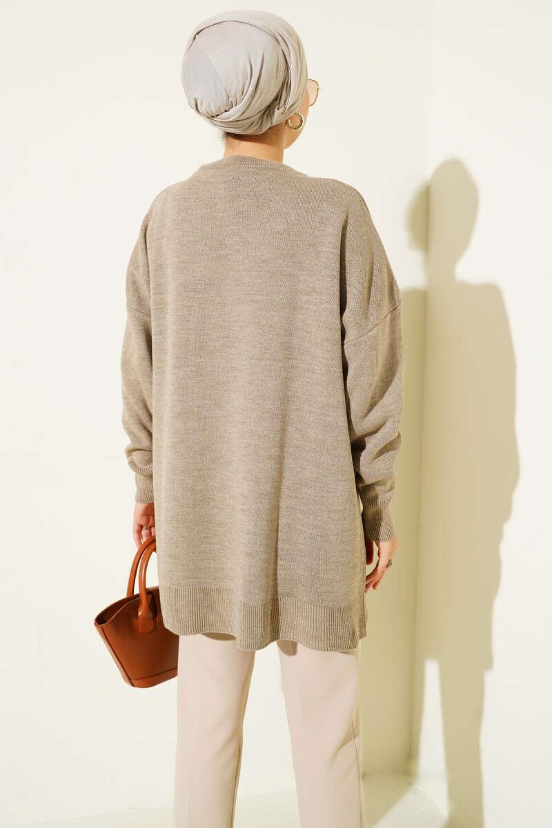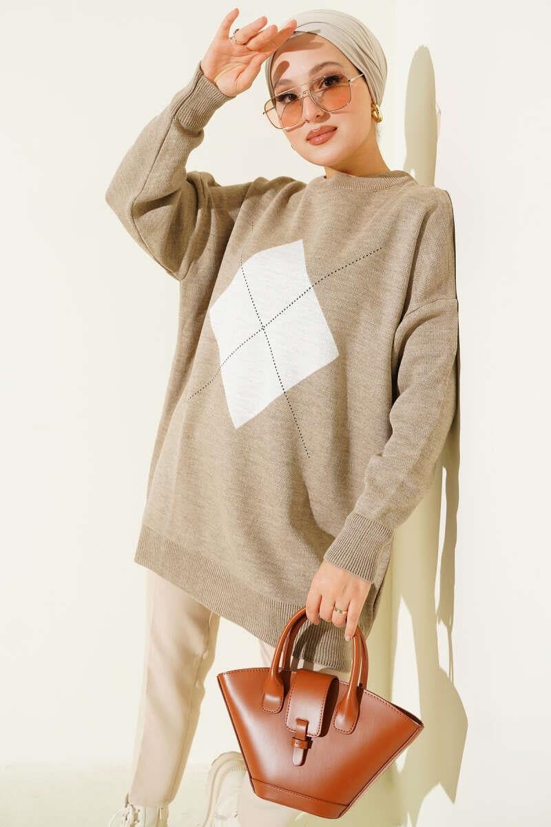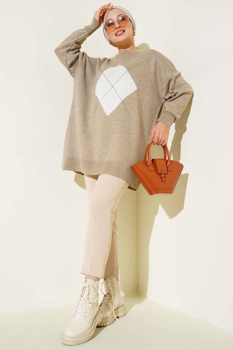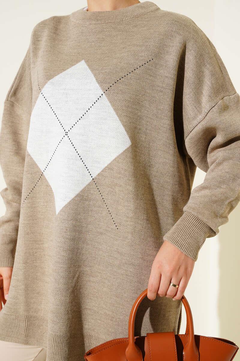 Diamond Stripe Detailed Knit Tunic Beige (0875-4125-670332)