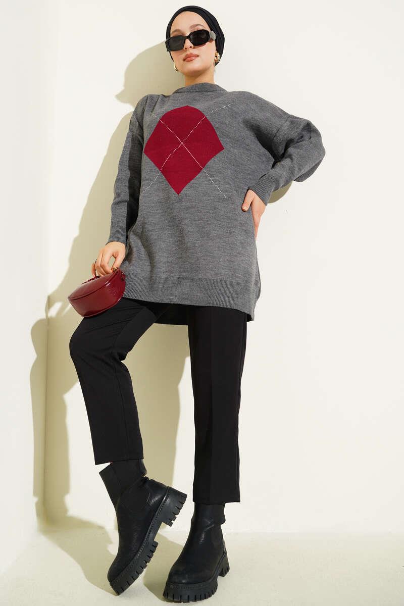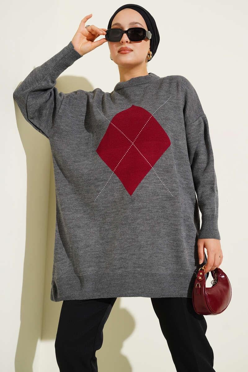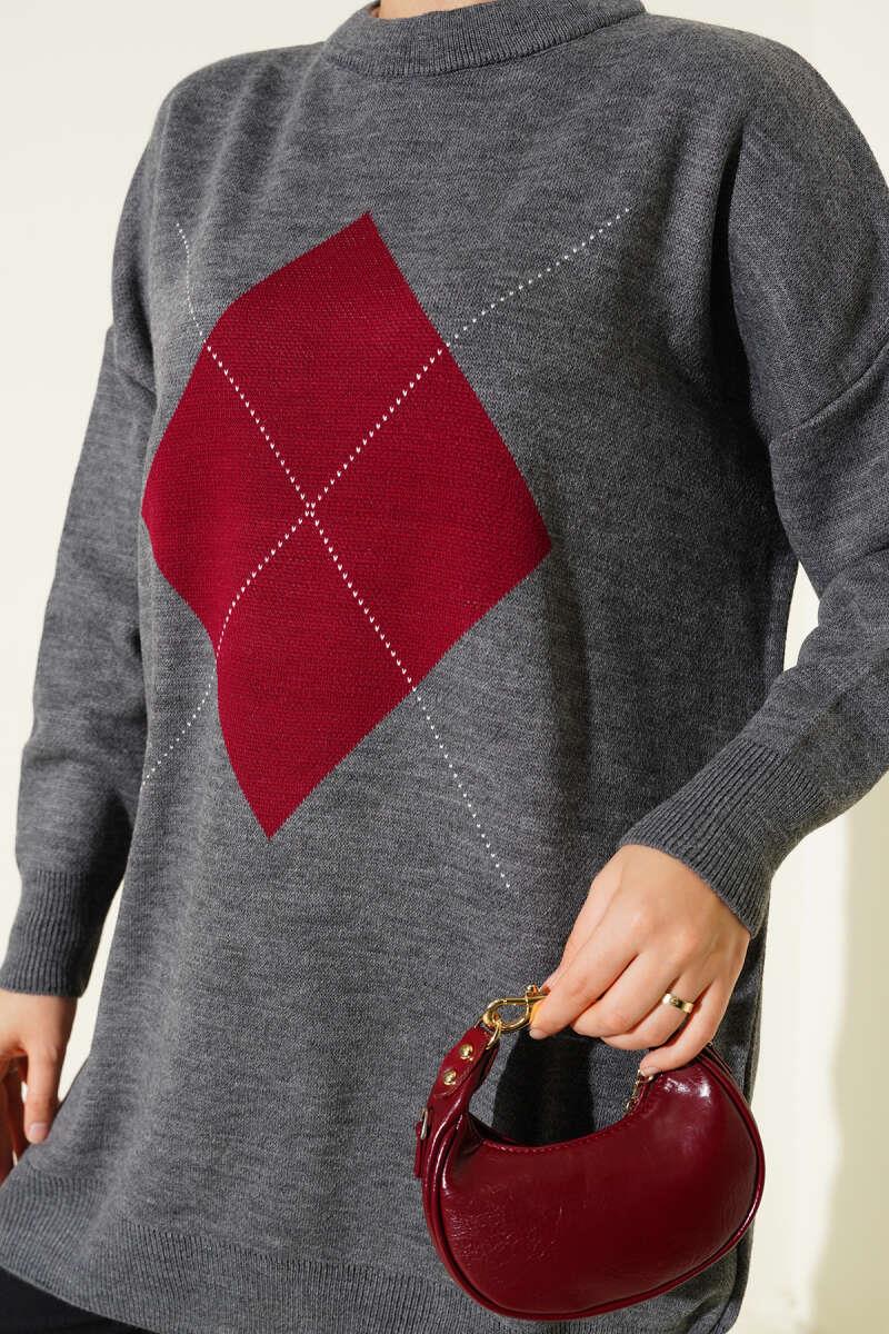 Diamond Stripe Detailed Knit Tunic Smoke (0875-4125-670334)