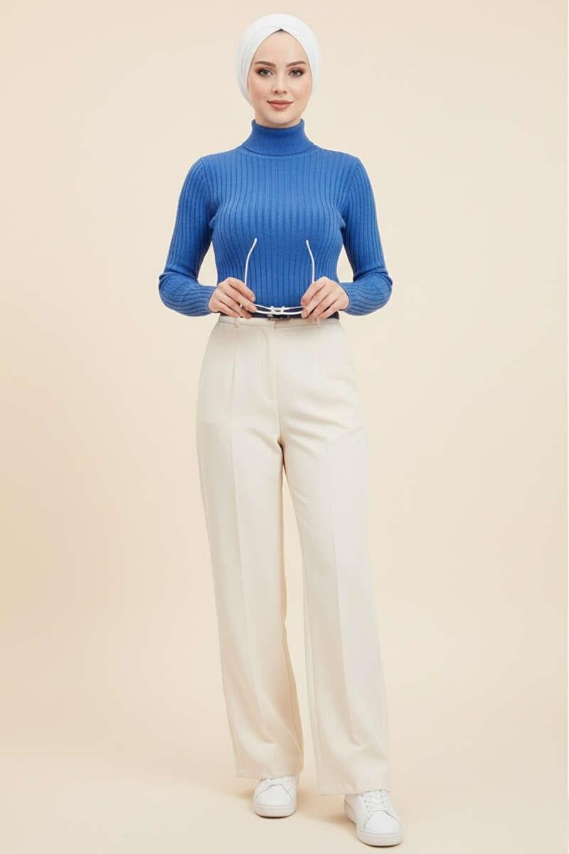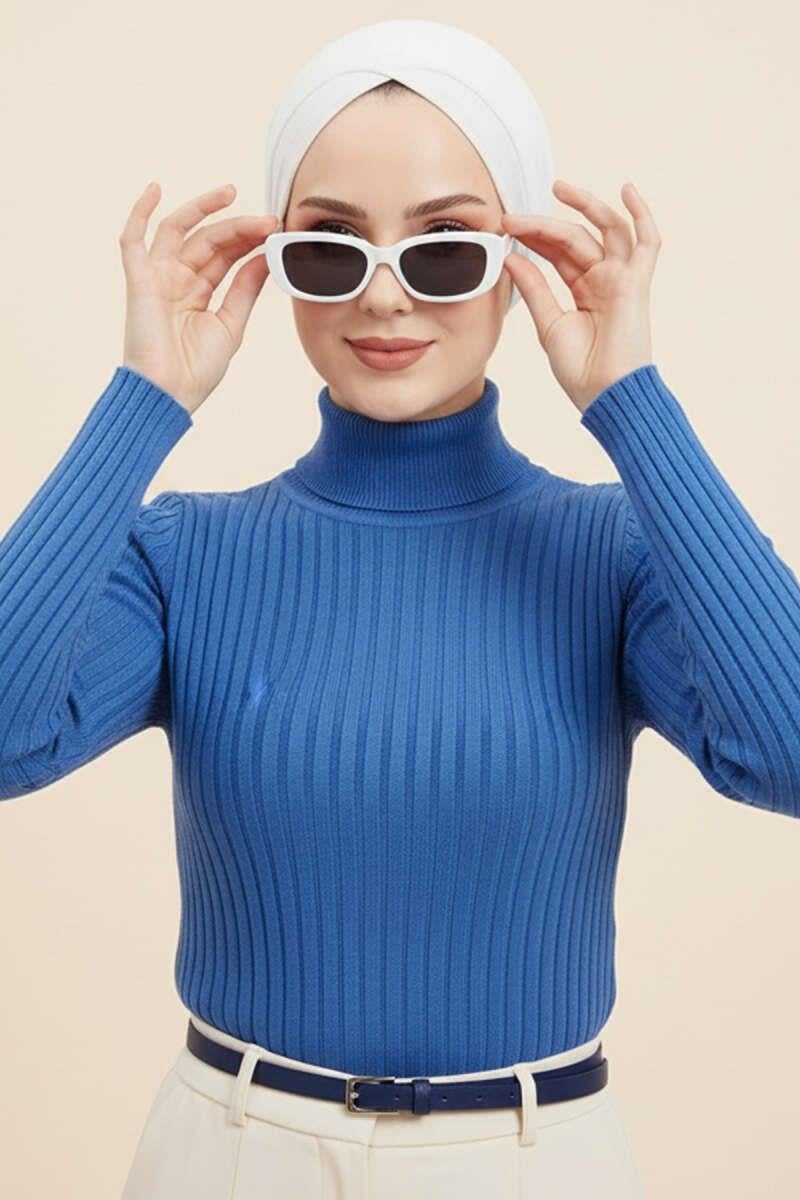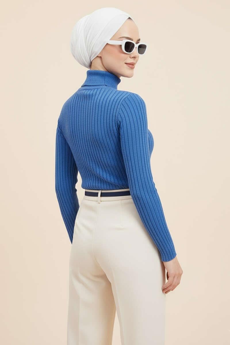 Turtleneck Ribbed Knit Sweater Blue (0592-6153-682590)