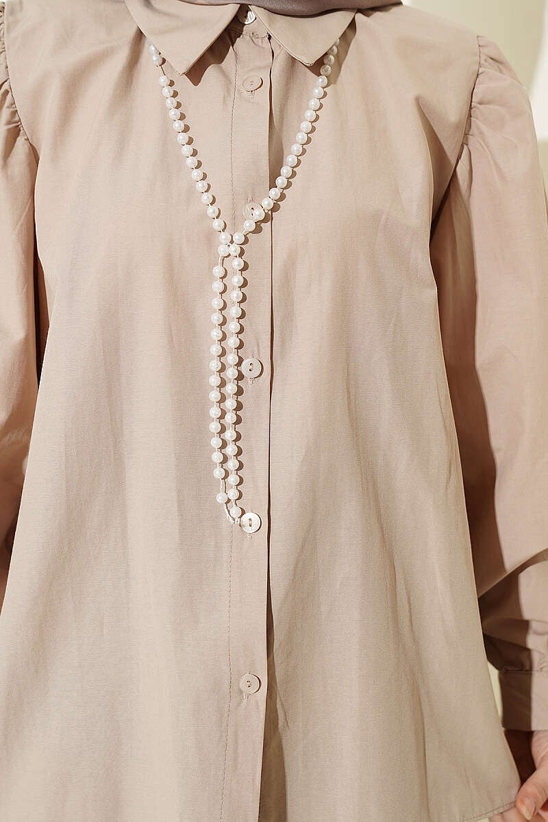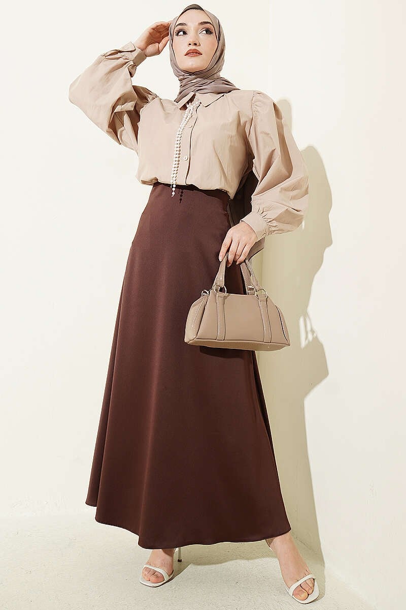 This shirt combines a classic collar form with a voluminous balloon sleeve design, offering a modern and bold silhouette. Its flowing structure starting from the shoulders and the cuff details add a sophisticated touch to the design while maximizing freedom of movement. Thanks to its short and basic cut, this piece pairs perfectly with high-waisted skirts and trousers, effortlessly elevating your everyday style. With its minimalist button details and timeless look, it offers versatile use for both office style and special occasions. Model Information: Height: 162 cm, Chest: 82 cm, Waist: 65 cm, Hips: 90 cm. The product on the model is size S/M.