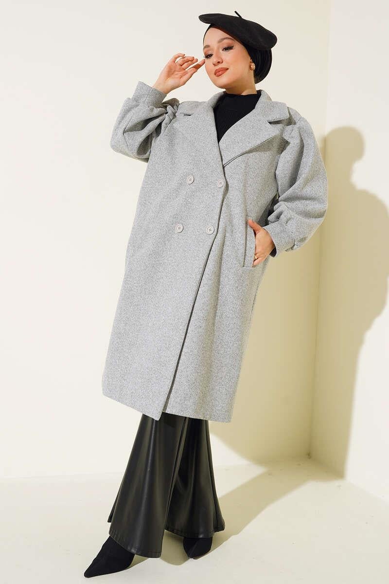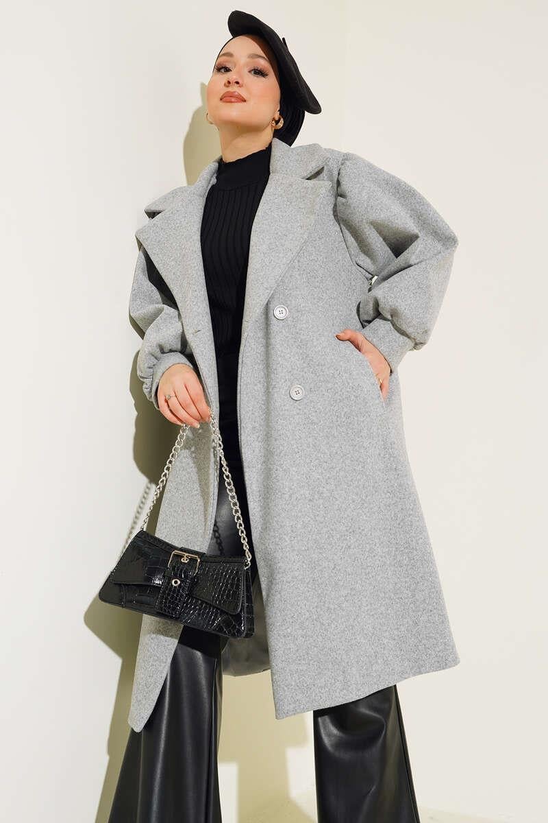 Balloon Cufflinked Cashmere Coat Gray (8900-2391-469994)