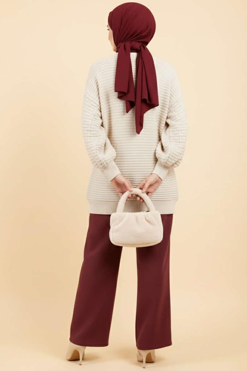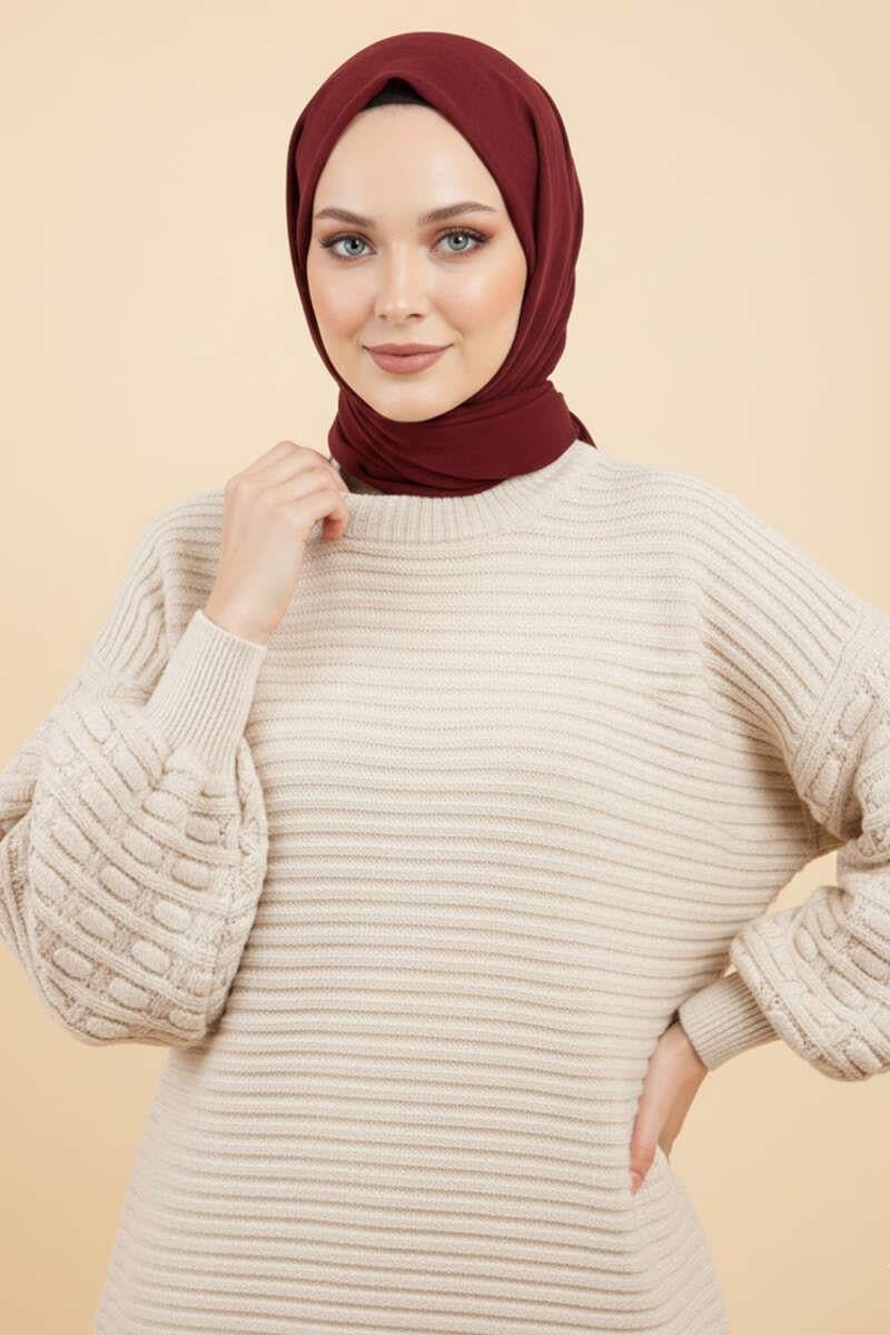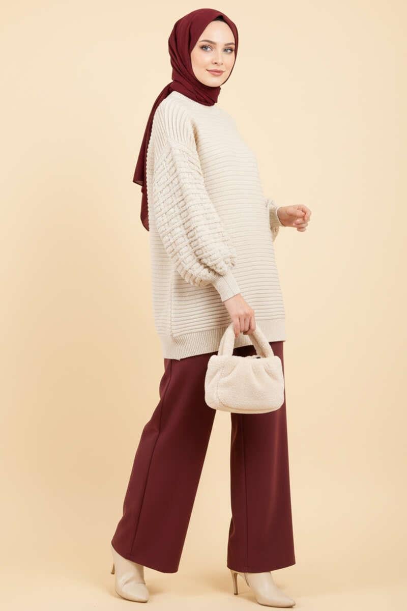 Balloon Sleeve Embossed Knit Tunic Beige (0875-2893-683572)