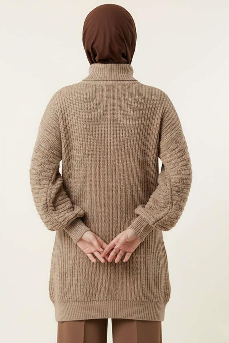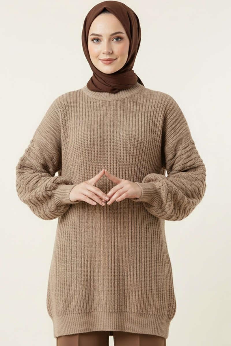 Balloon Sleeve Embossed Knit Tunic Mink (0875-2893-683597)