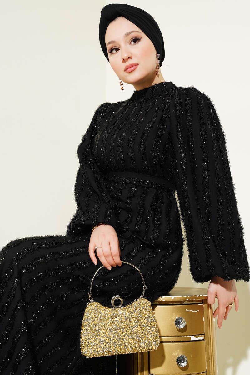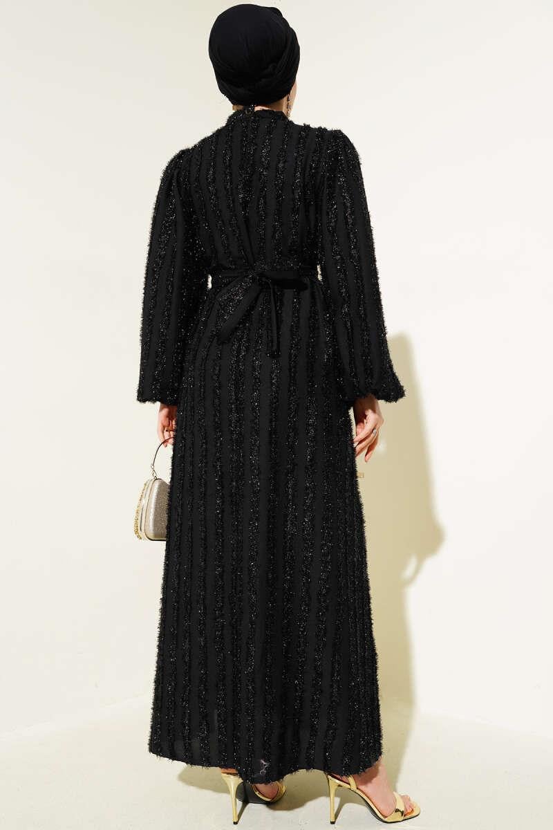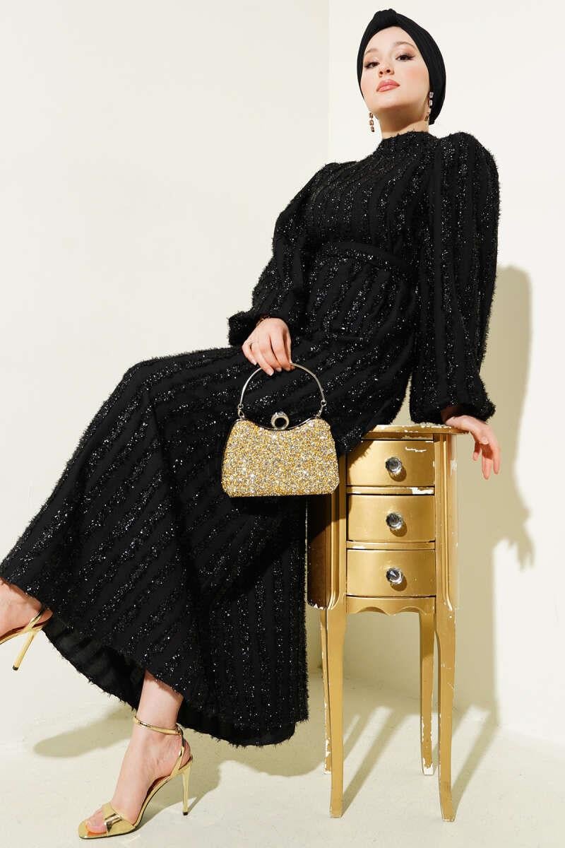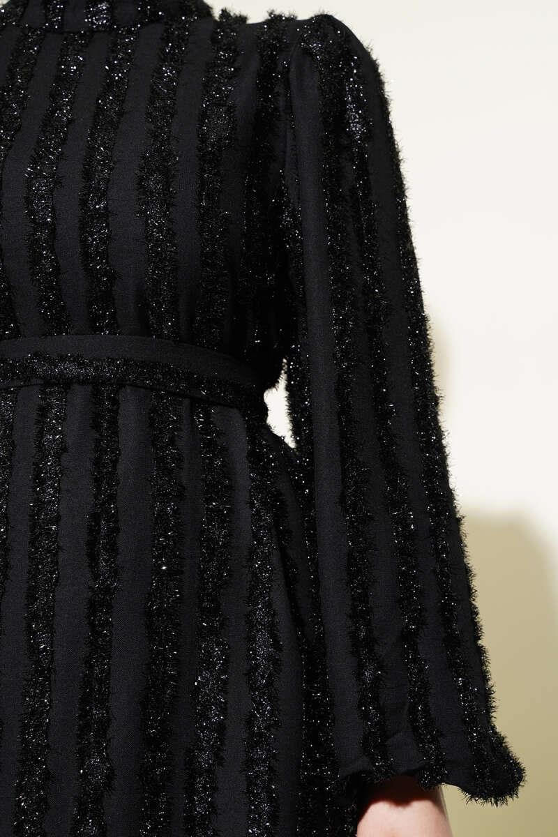 Balloon Sleeve Glitter Bearded Dress Black (0569-3069-40-616646)