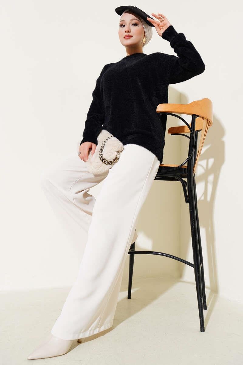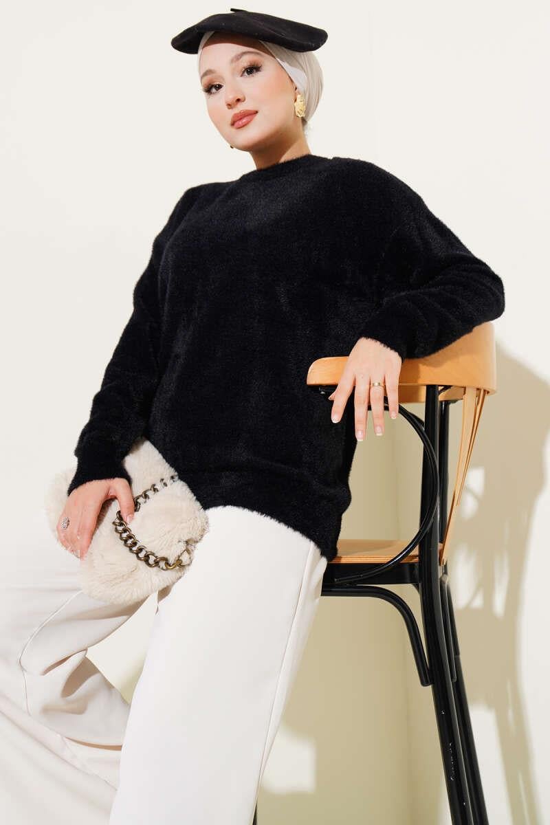 Basic Crew Neck Bearded Sweater Black (0853-2616-672975)