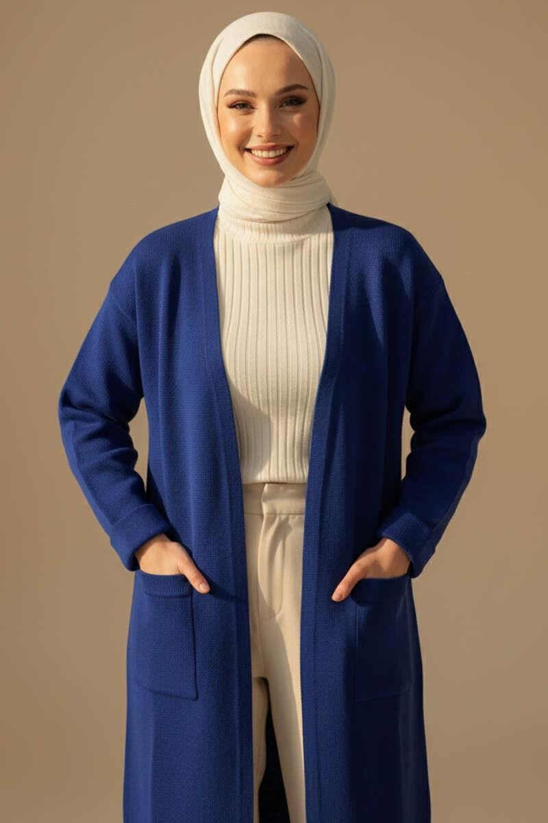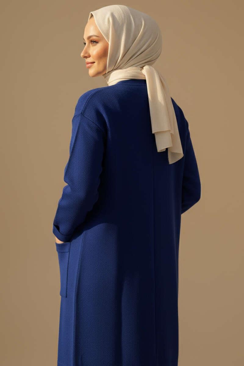 Basic Double Pocket Long Knit Cardigan Navy Blue (0875-7145-670167)