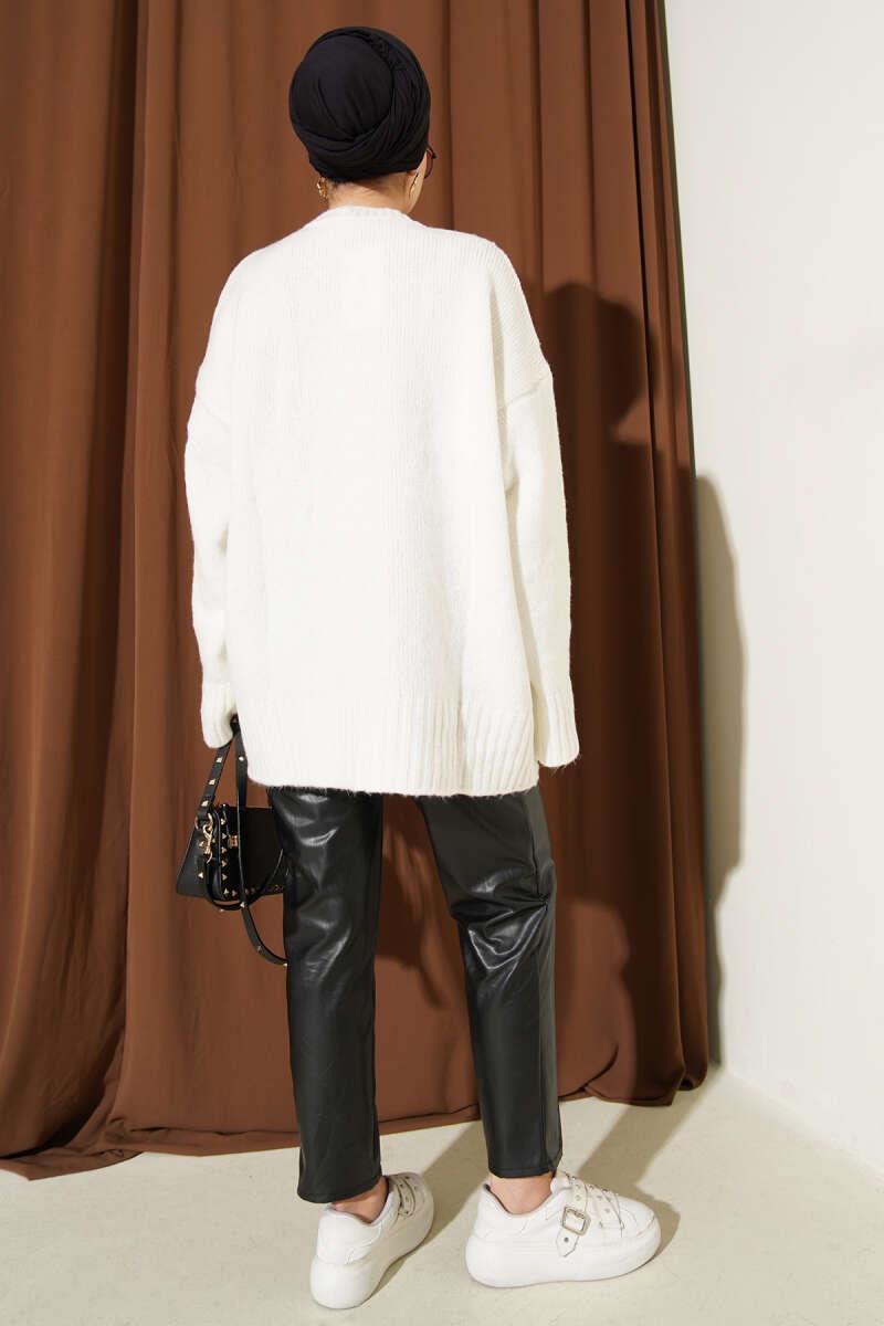 Basic Vertical Stripe Detailed Knitwear Sweater Ecru (8380-1521 -676078)