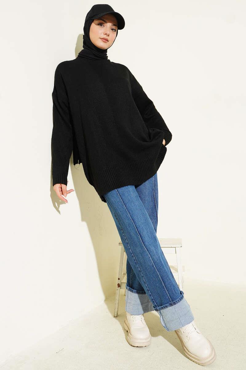Basic Off-Shoulder Loose Knit Tunic Black (0537-6892-690151)