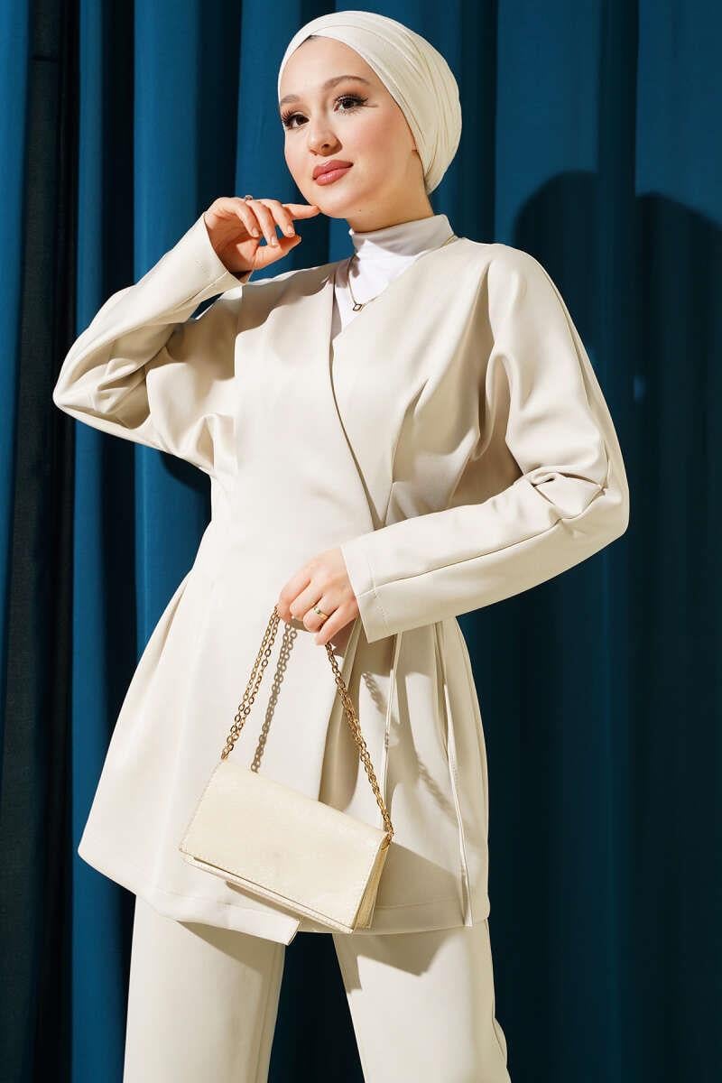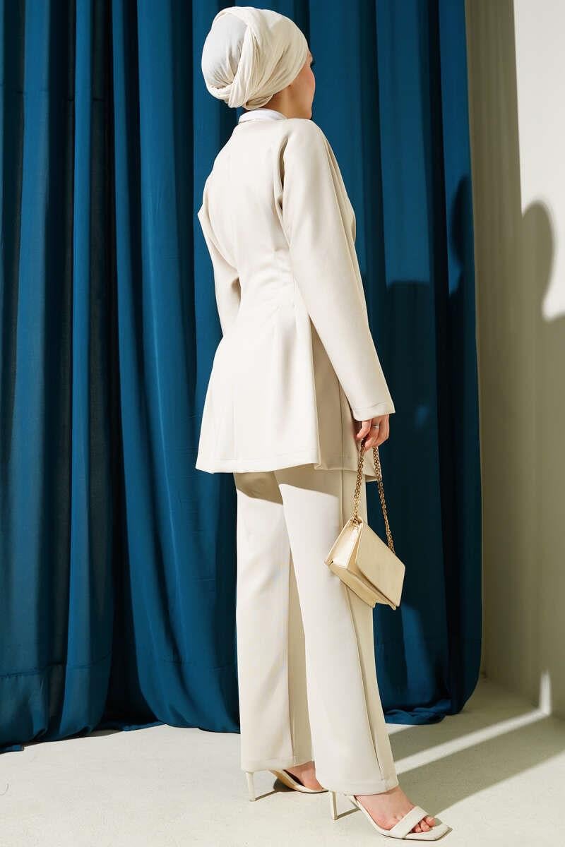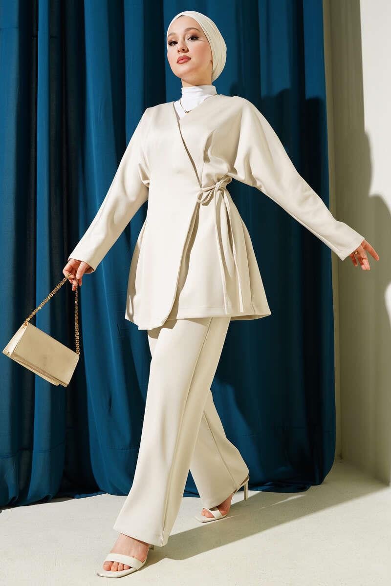 Waist-Stitched Tied Scuba 2 Piece Set Beige (0537-4344-614460)
