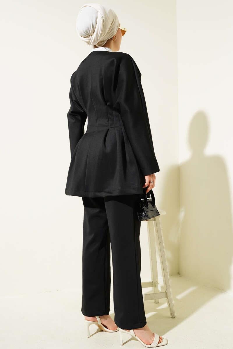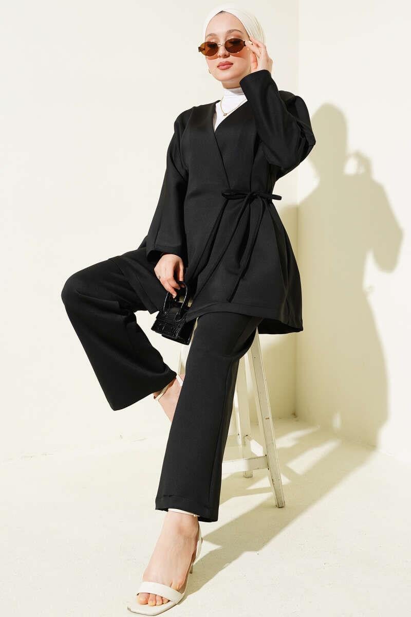 Waist Seamed Tied Scuba 2 Piece Set Black (0537-4344-614466)