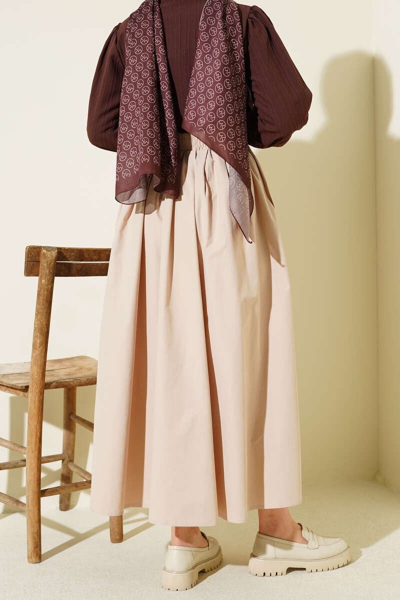 Poplin Skirt with Elastic Waist and Pockets, Beige