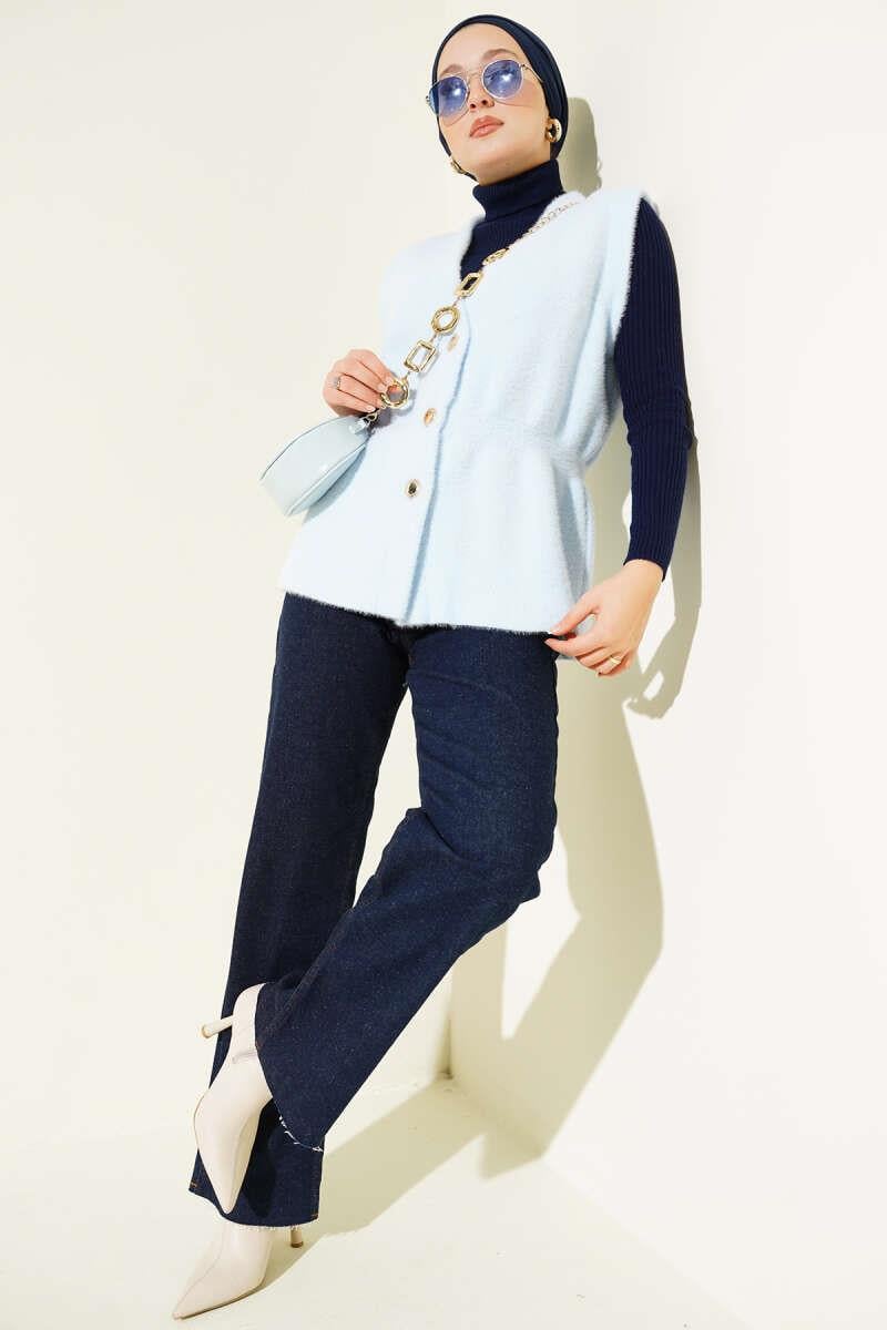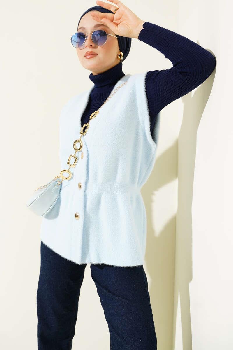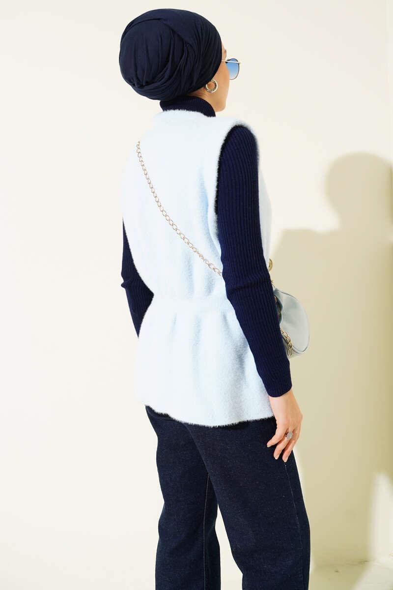 Elastic Waistband Bearded Knit Vest Baby Blue (8387-2504-679105)