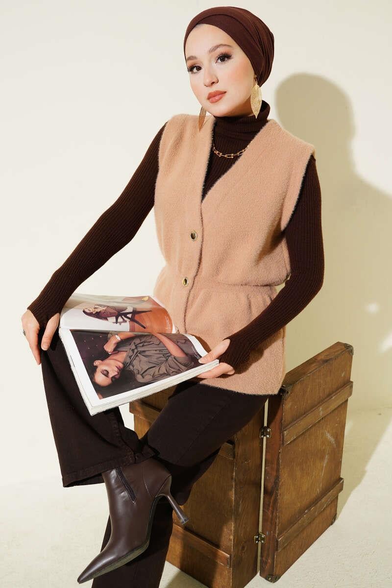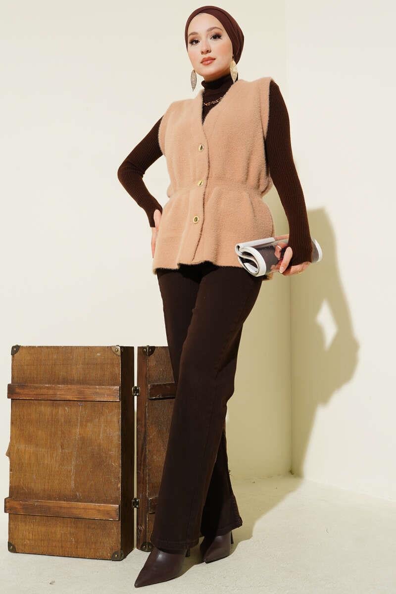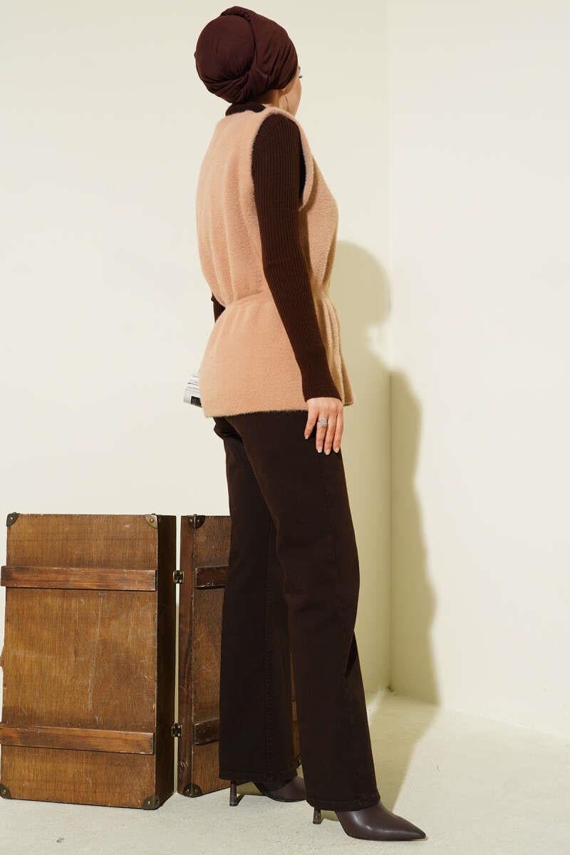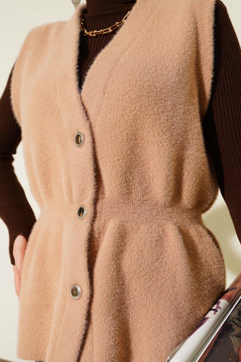 Elastic Waistband Bearded Knit Vest Camel (8387-2504-683125)