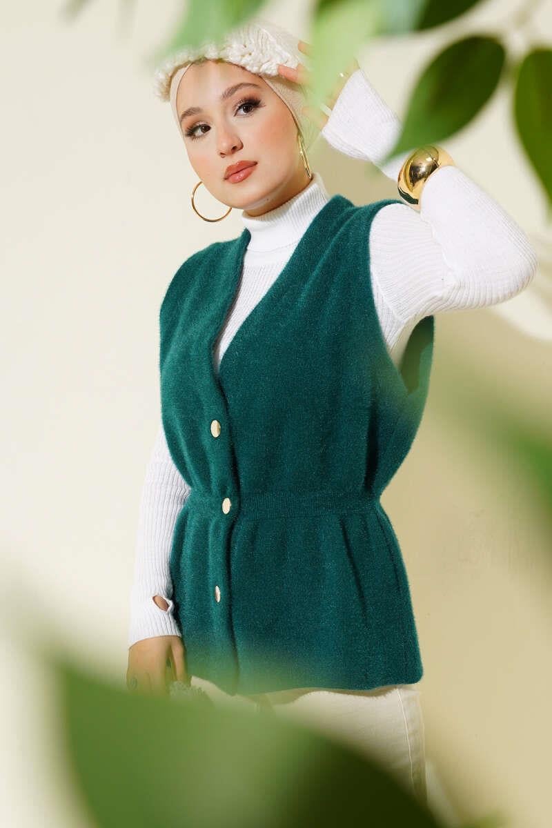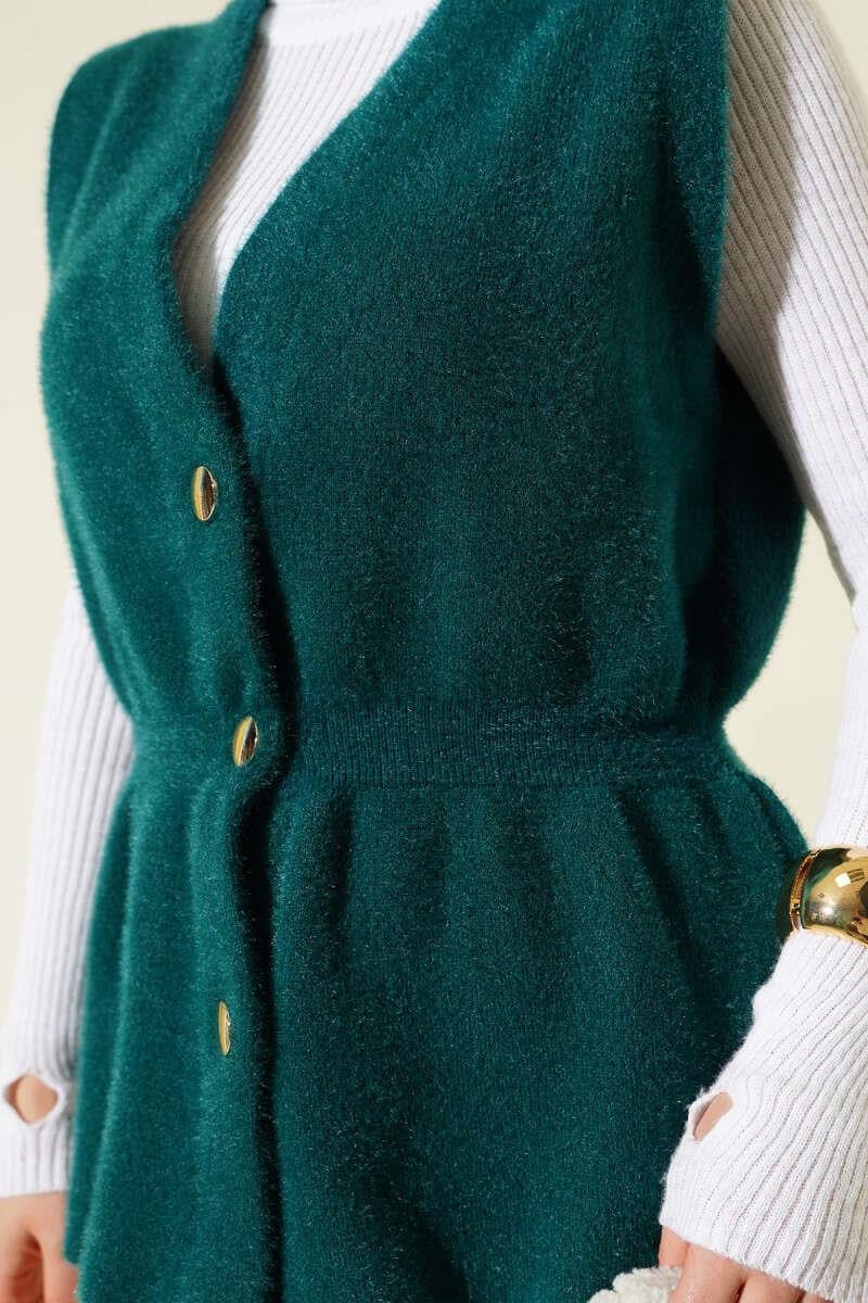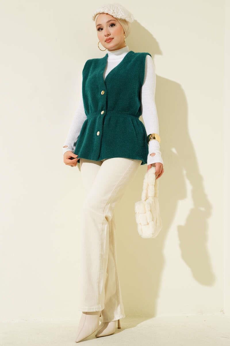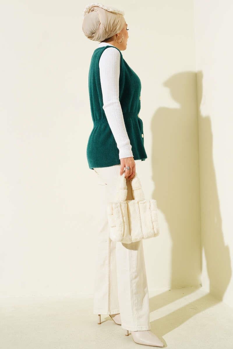 Elastic Waistband Bearded Knit Vest Emerald (8387-2504-ZÜMRÜT)