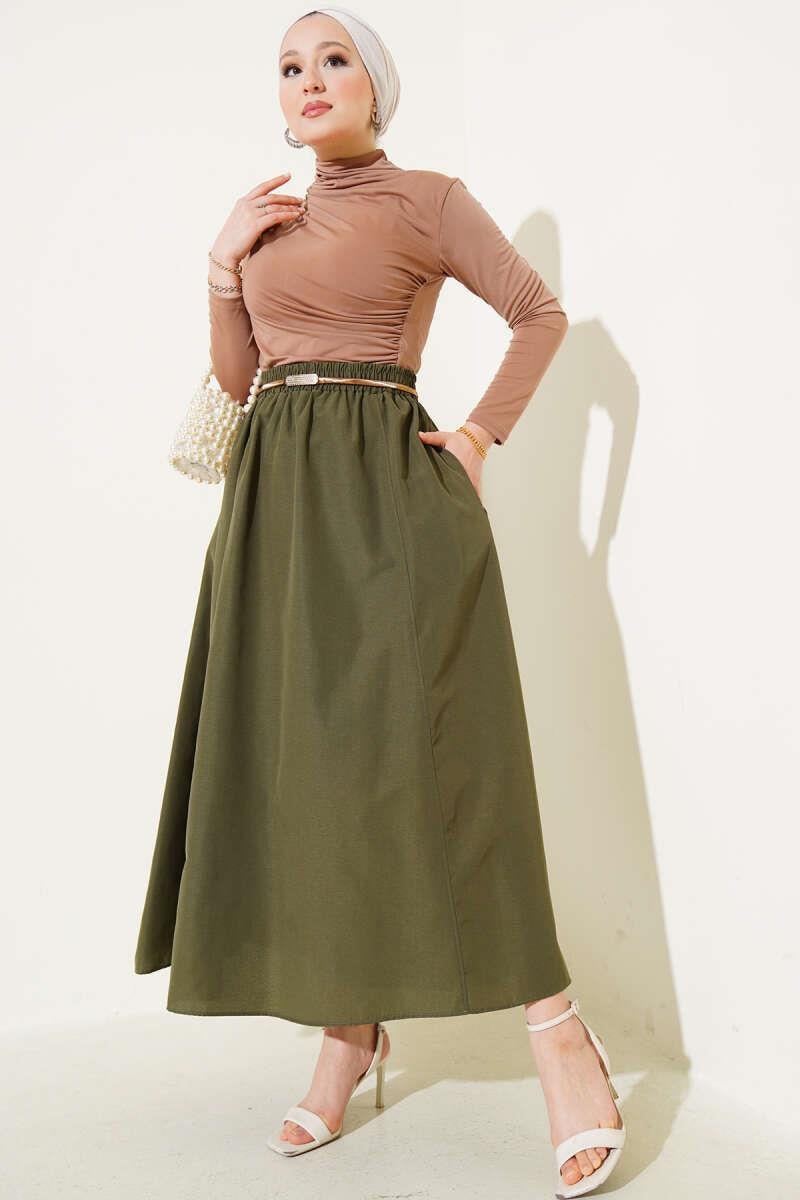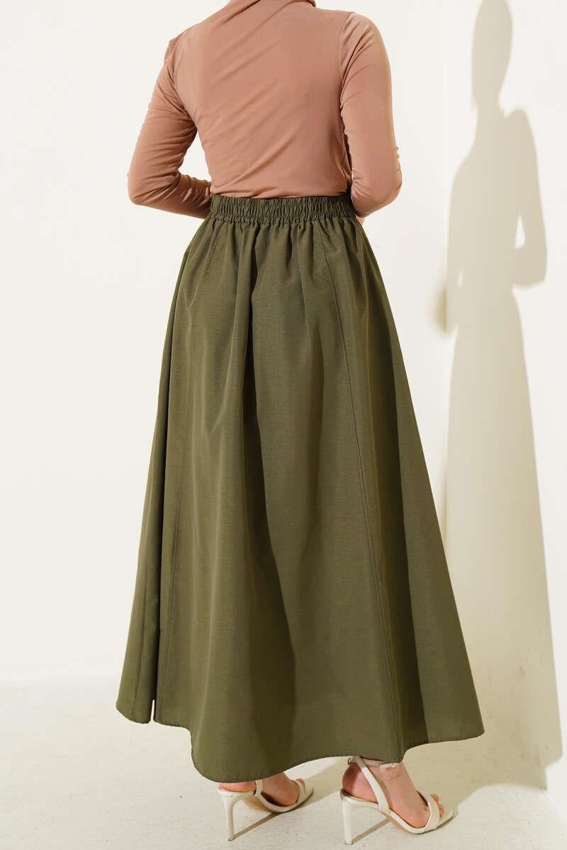Elastic Waist Terikoton Skirt Khaki (8141-1708-631545)