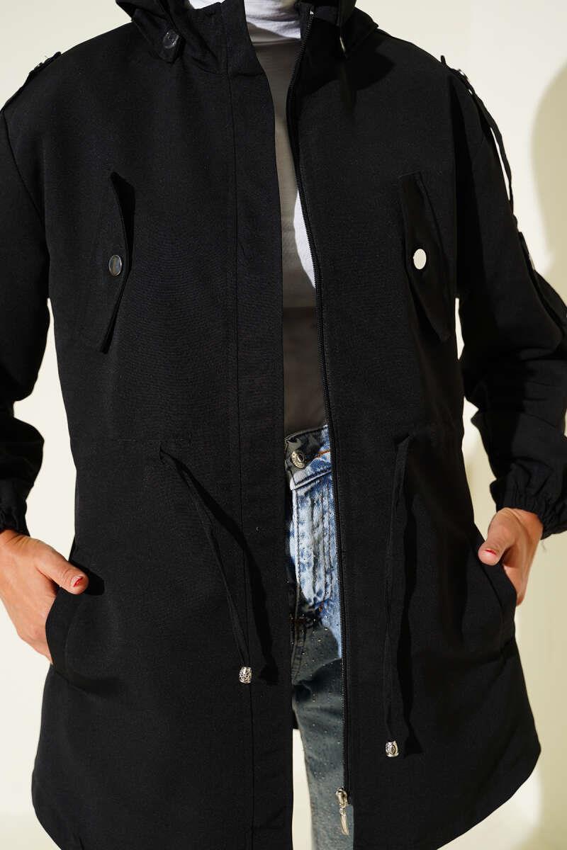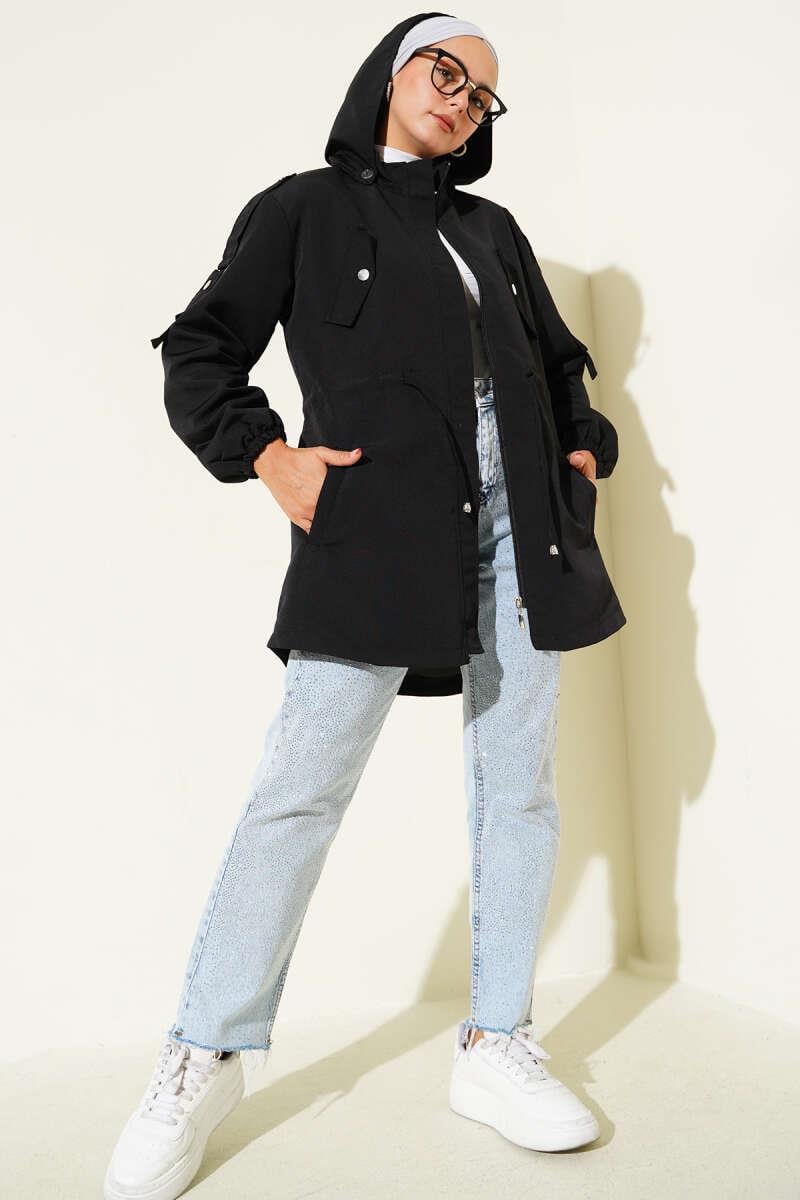 Waist Tunnel Hooded Trench Coat Black (0999-6275-673293)