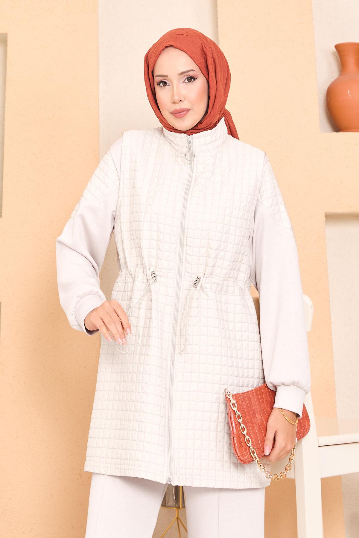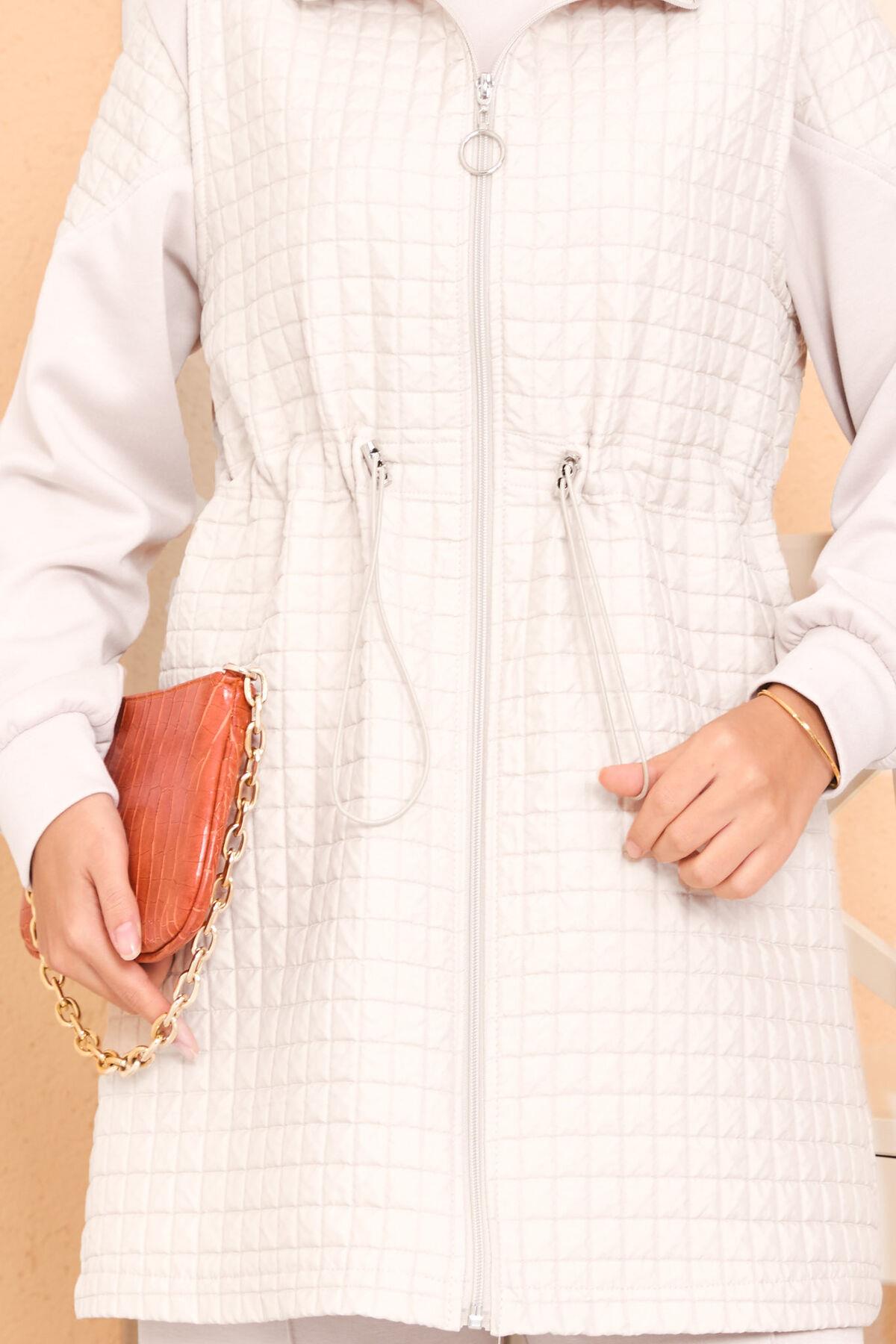 Three-Piece Hijab Set with Adjustable Waist Quilted Vest, Beige (125M01721191R0638)