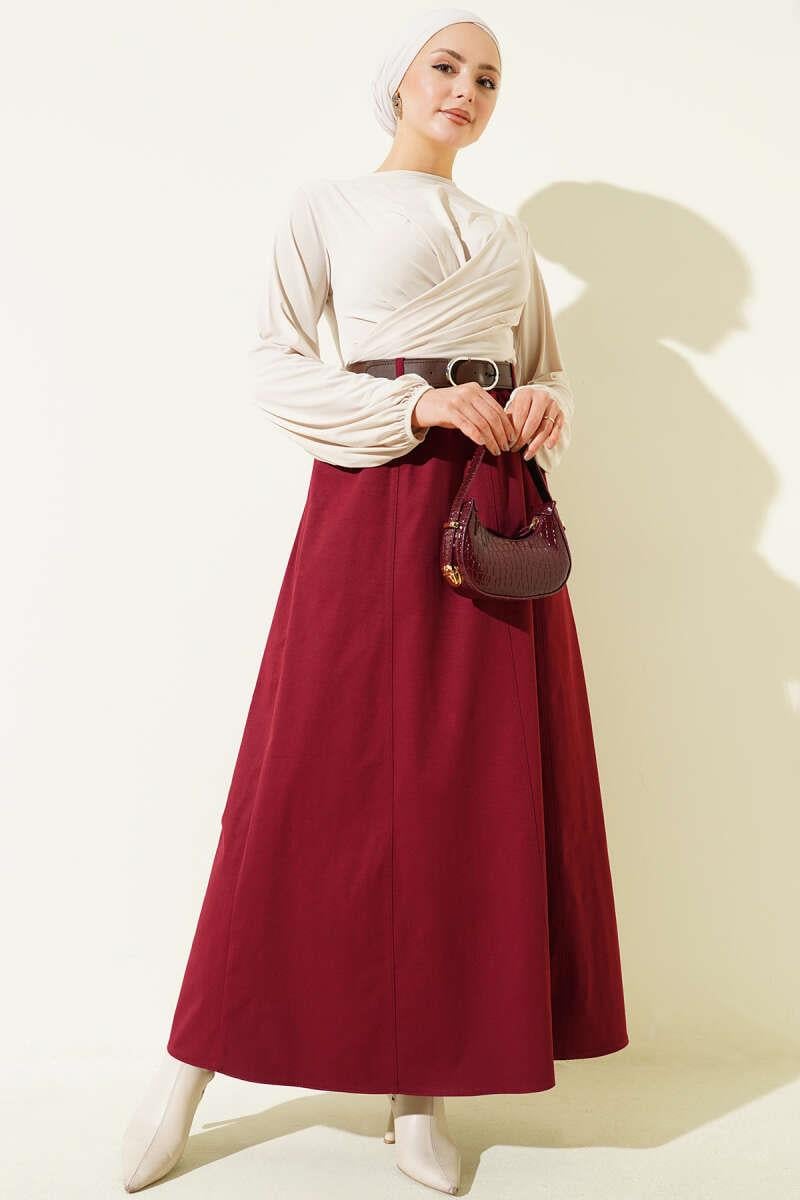 Basic Flared Skirt with Elastic Waistband, Burgundy (0262-4453-715783)