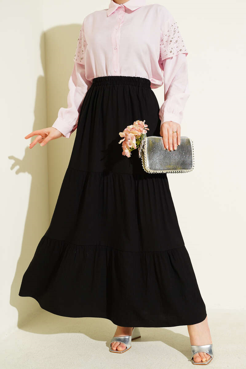 Elastic Waist Double Layer Skirt Black (0999-6764-724914)