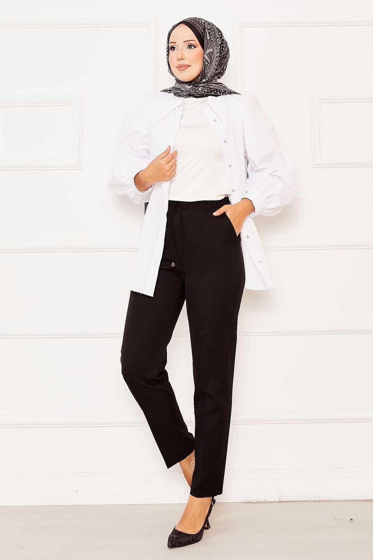 Elastic Waist Skinny Leg Trousers Black (125M00124411R5238)