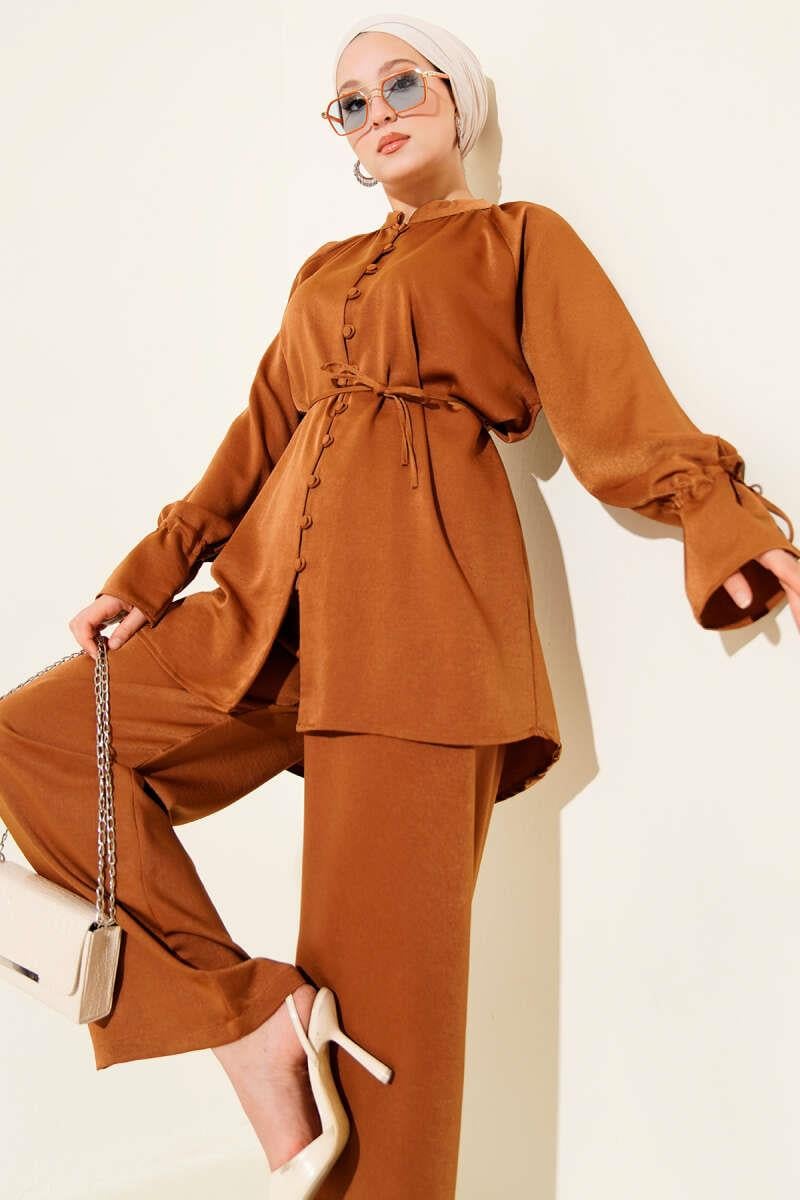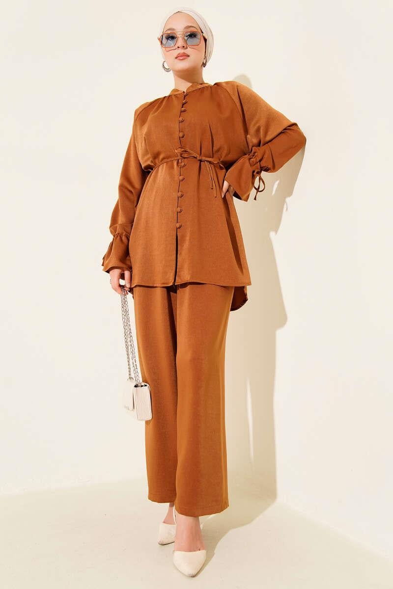 Ankle Tunic Brit Button 2 Piece Set Tan (0853-3006-672612)
