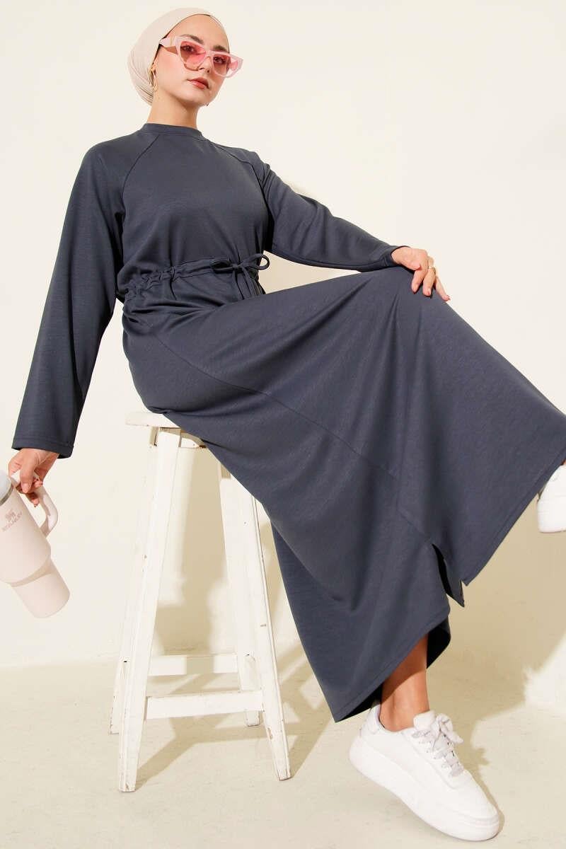 Crew Neck Waist Tunnel Loysha Dress in Smoke (0428-8215-674564)