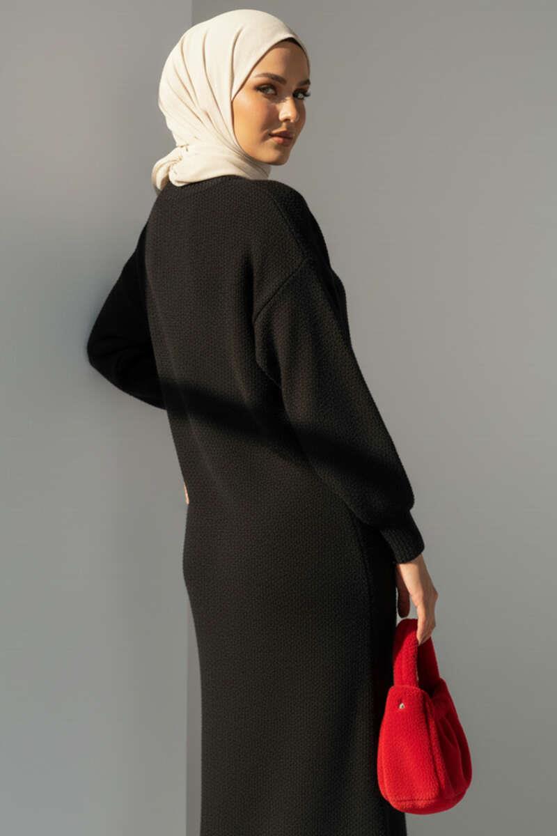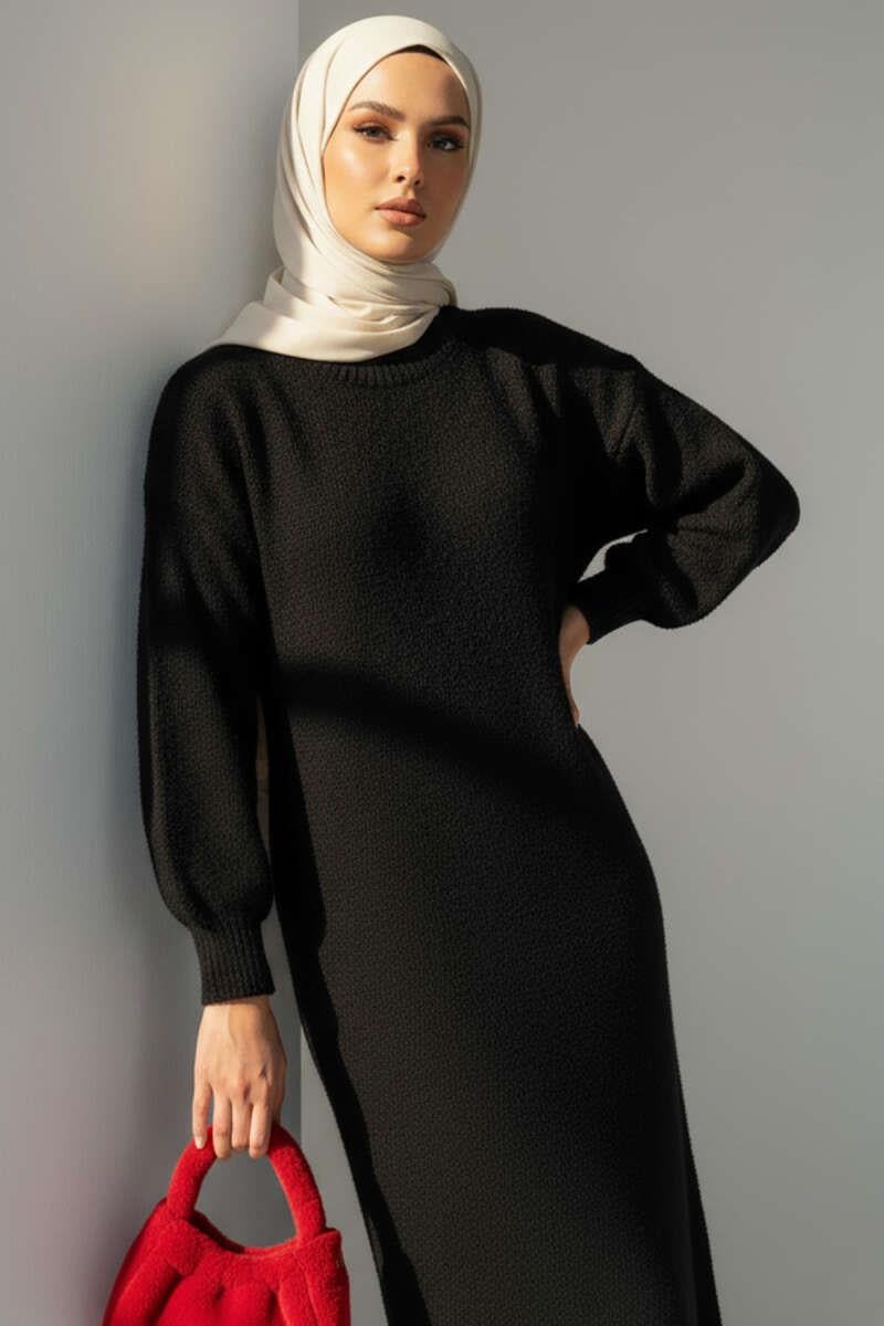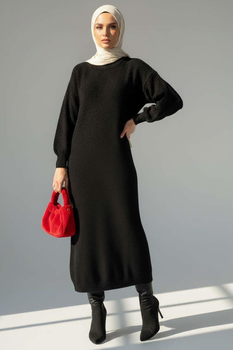 Crew Neck Boucle Knit Dress Black (0875-4414-670115)