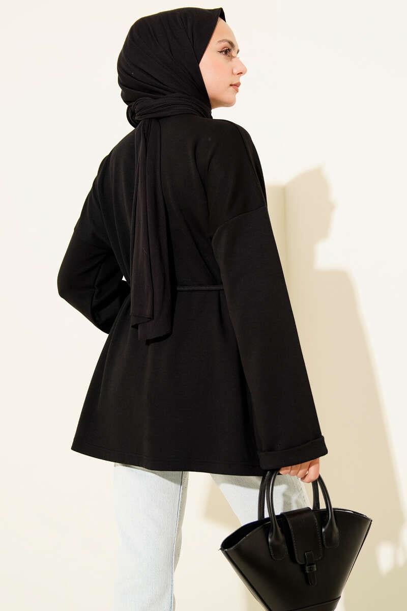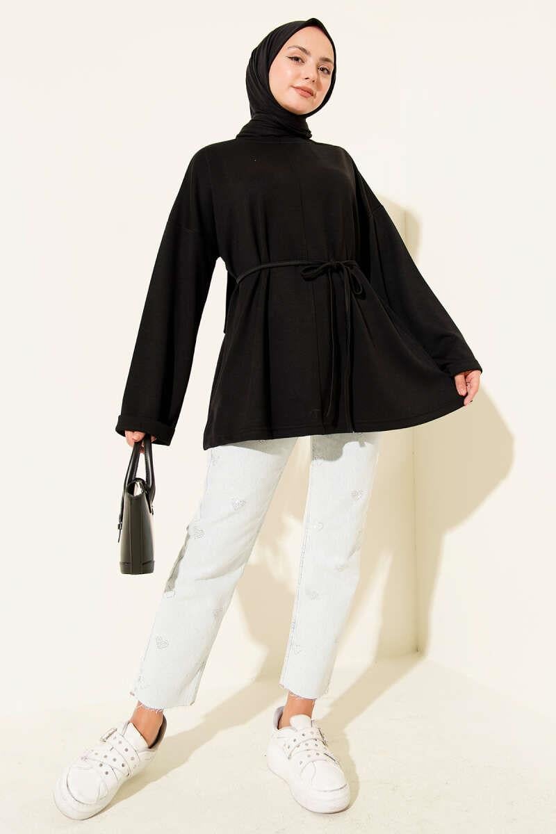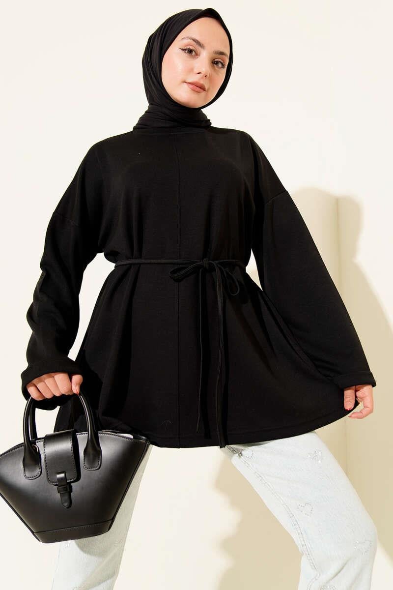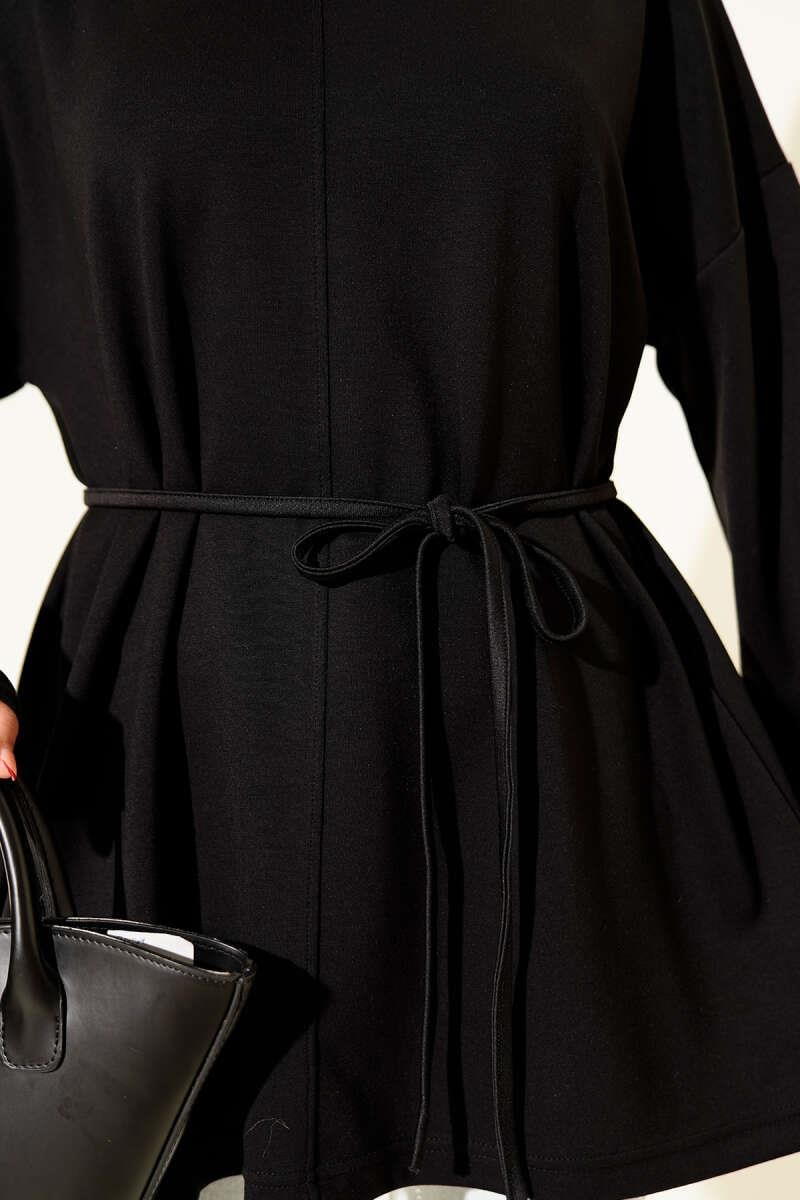 Crew Neck Rope Belted Tunic Black ( 0753-2929-678864)