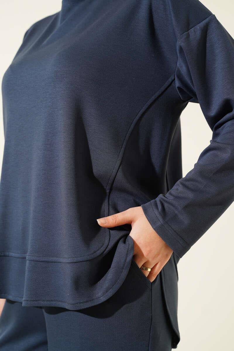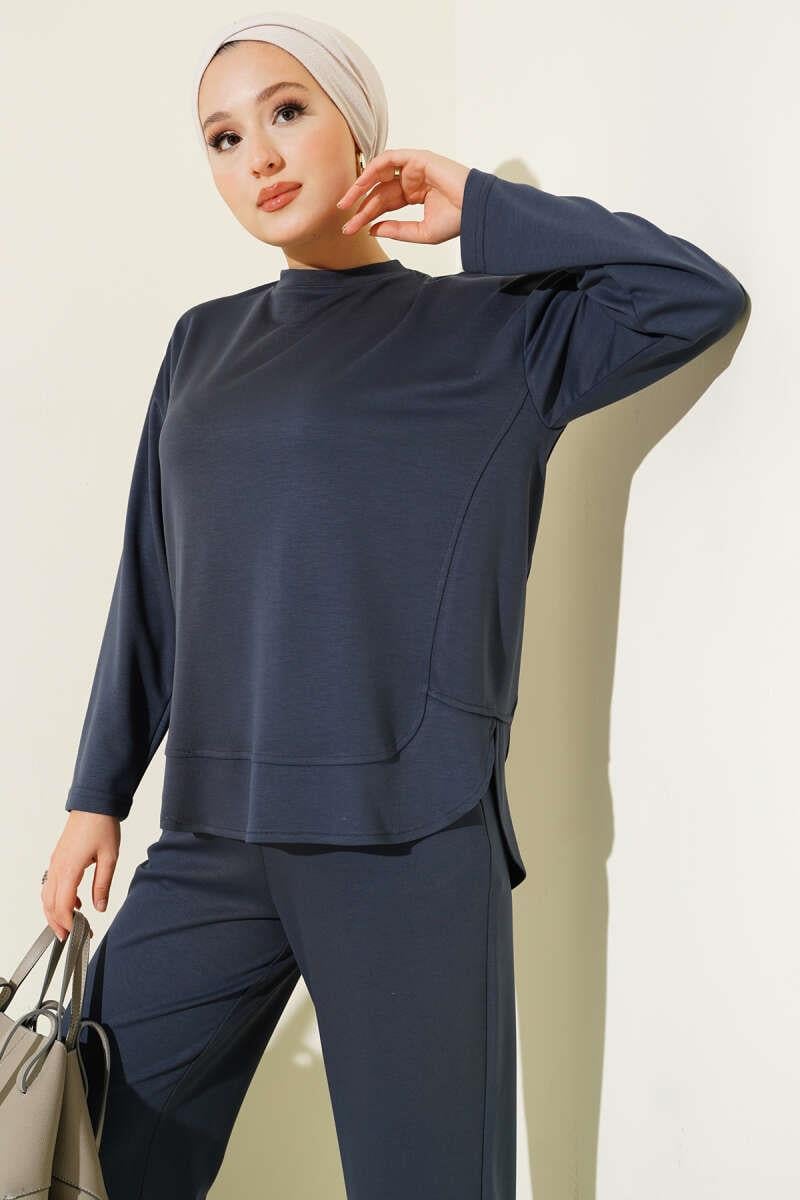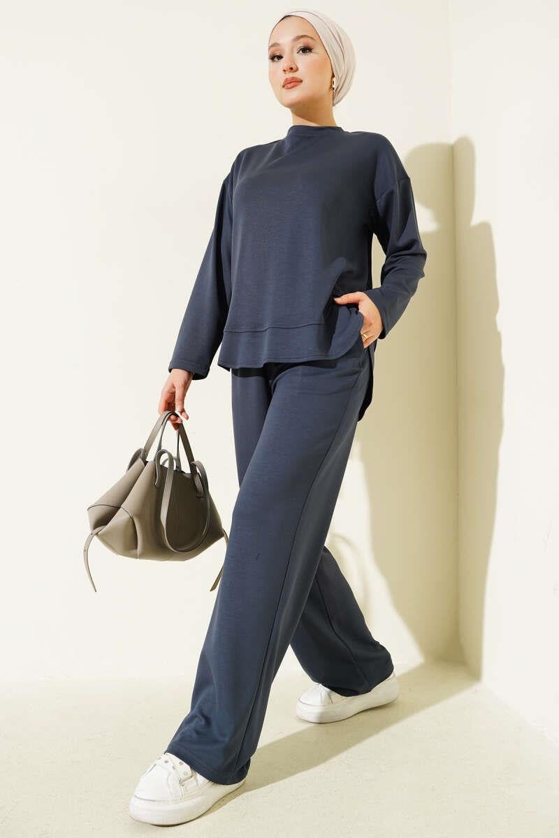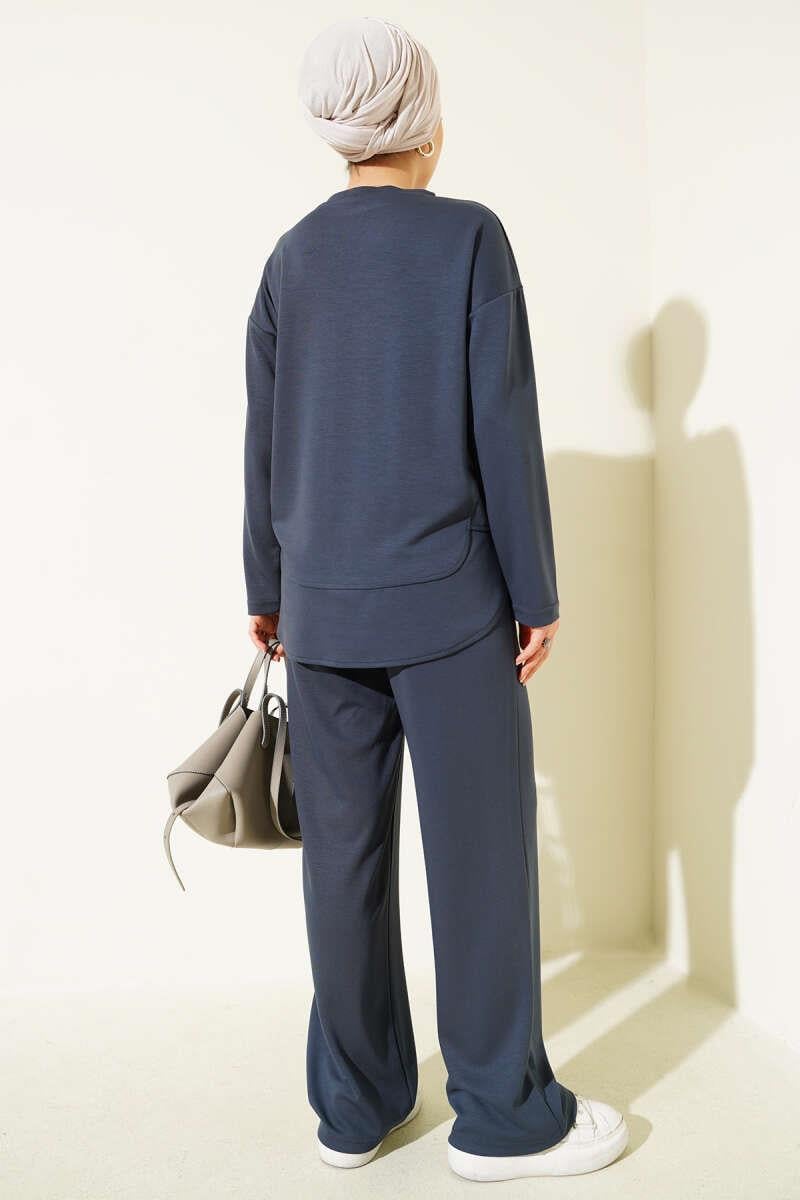 Crew Neck Oval Detailed 2 Piece Set in Smoke (0428-8217-676704)