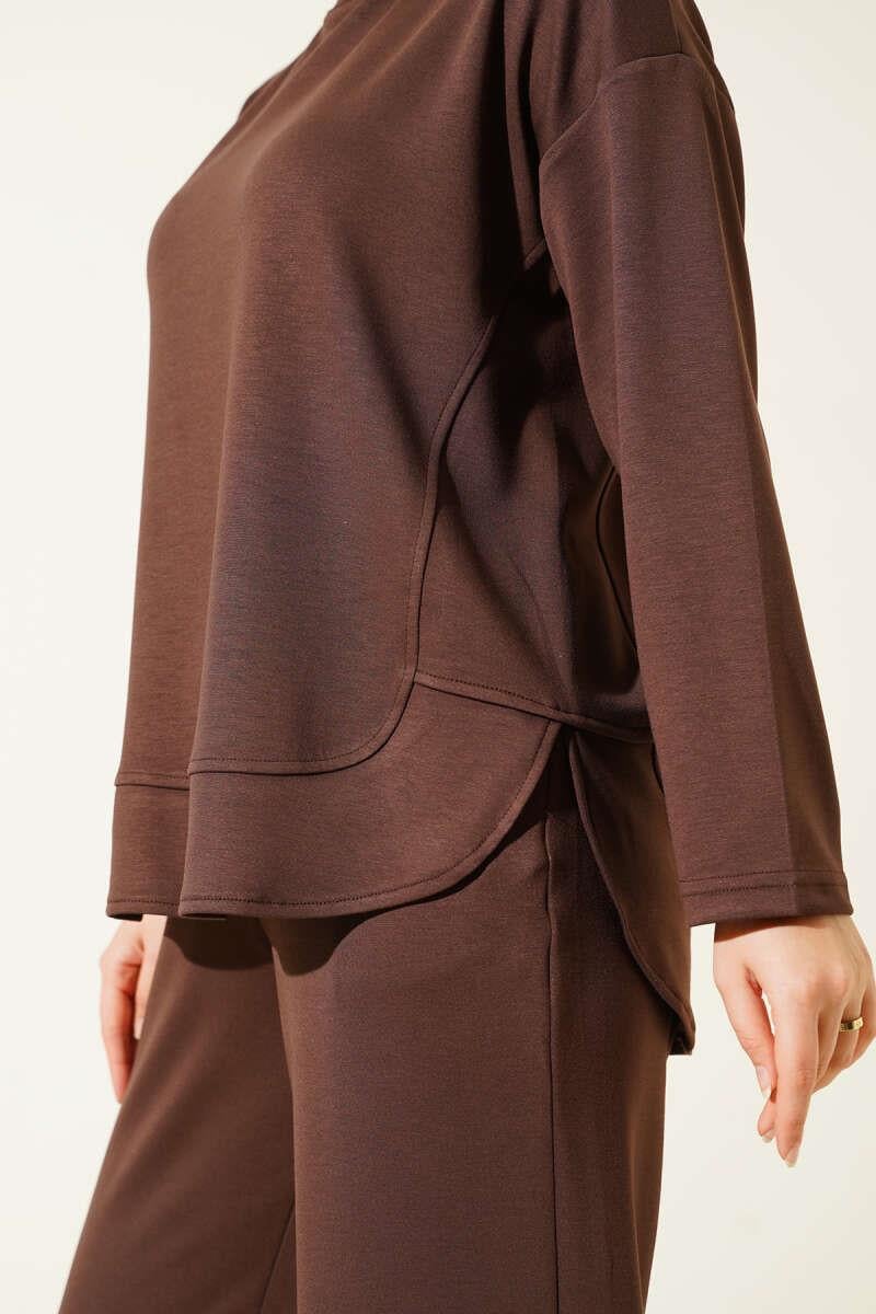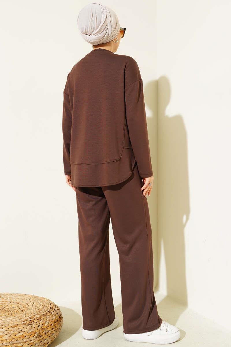 Crew Neck Oval Detailed 2 Piece Set Brown (0428-8217-676709)