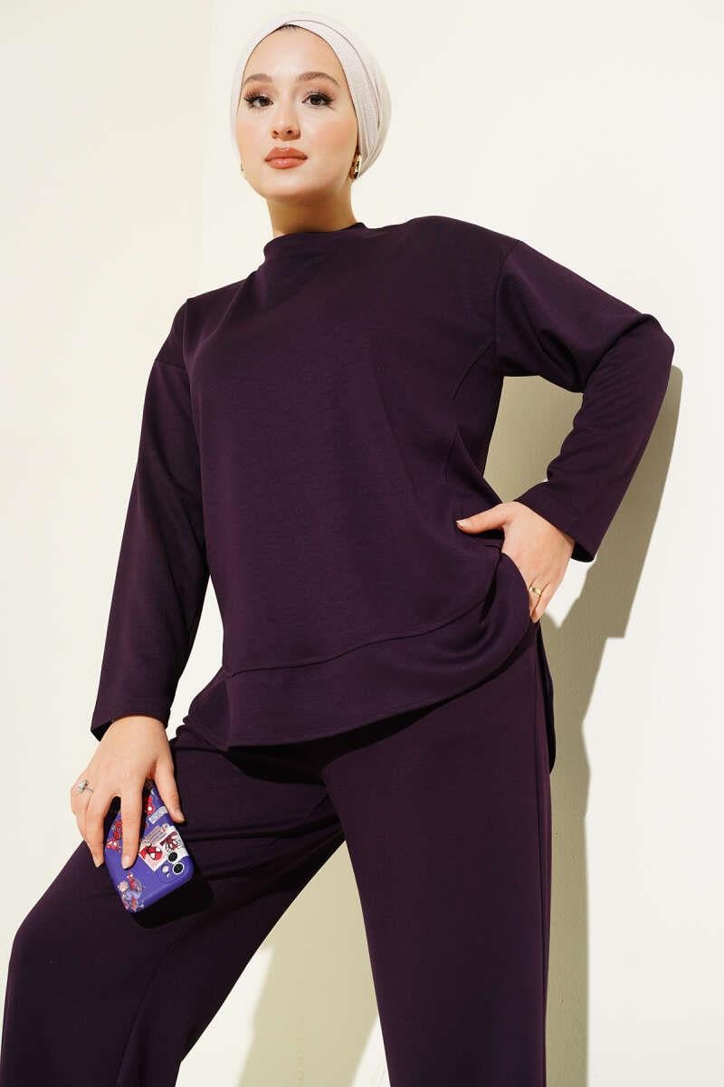 Crew Neck Oval Detailed 2 Piece Set Plum (0428-8217-676719)