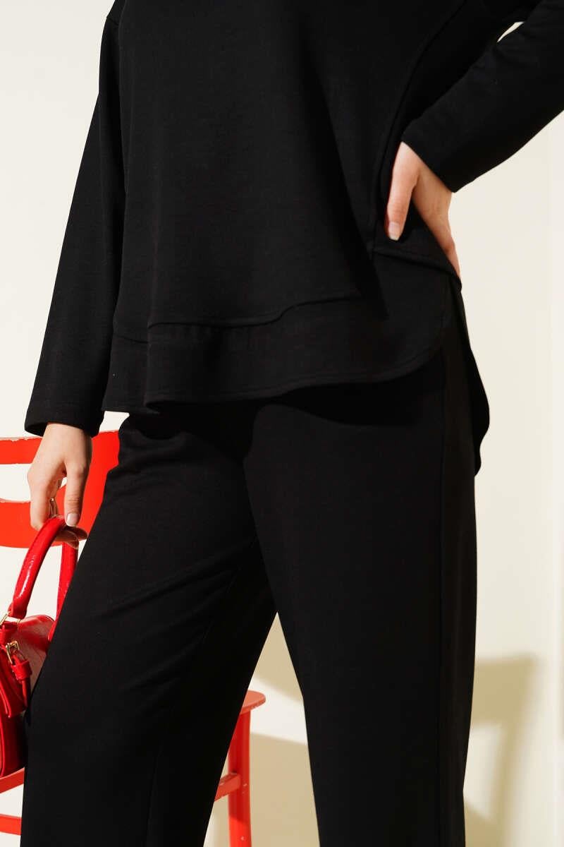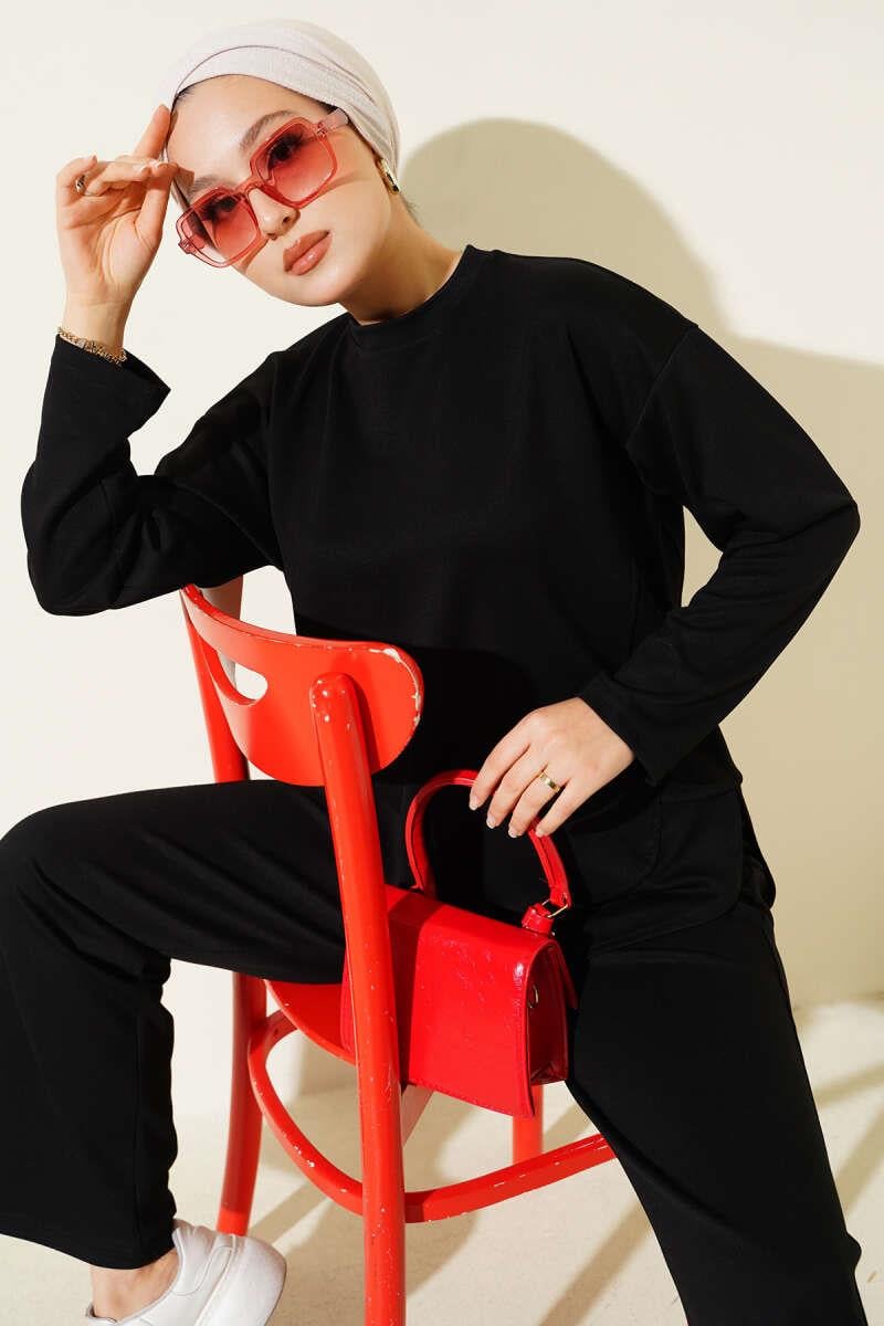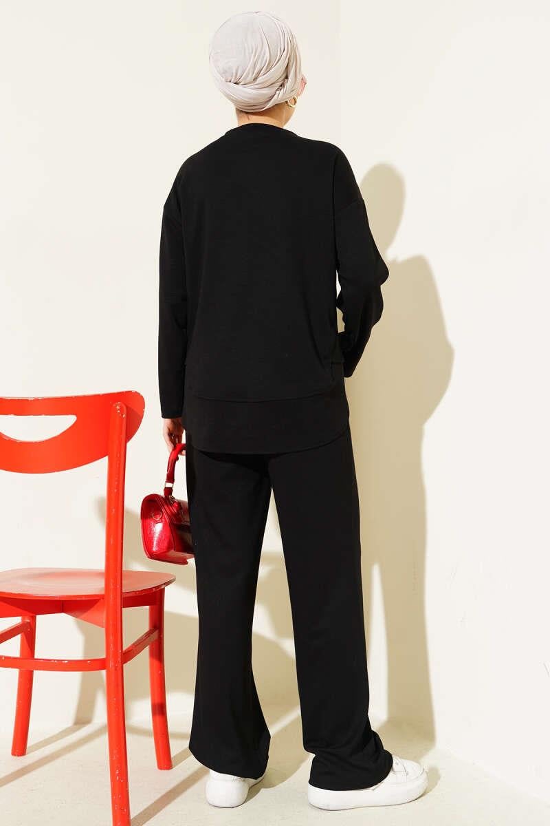 Crew Neck Oval Detailed 2 Piece Set Black (0428-8217-676724)
