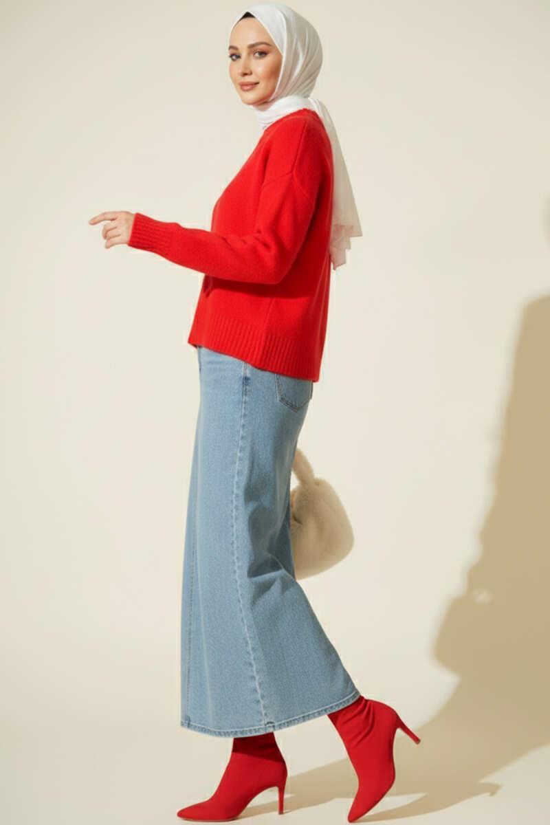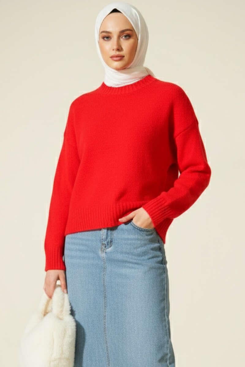 Crew Neck Soft Knit Sweater Alizarin (8374-0922-672179)