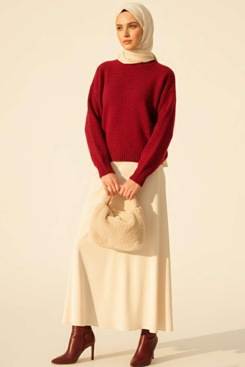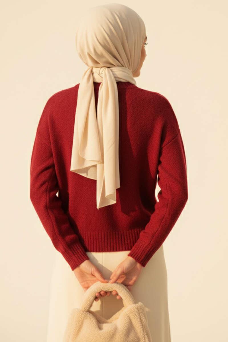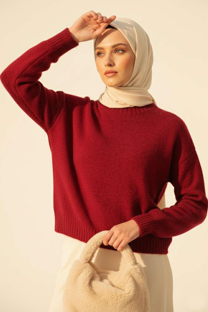 Crew Neck Soft Knitted Sweater Burgundy (8374-0922-672181)