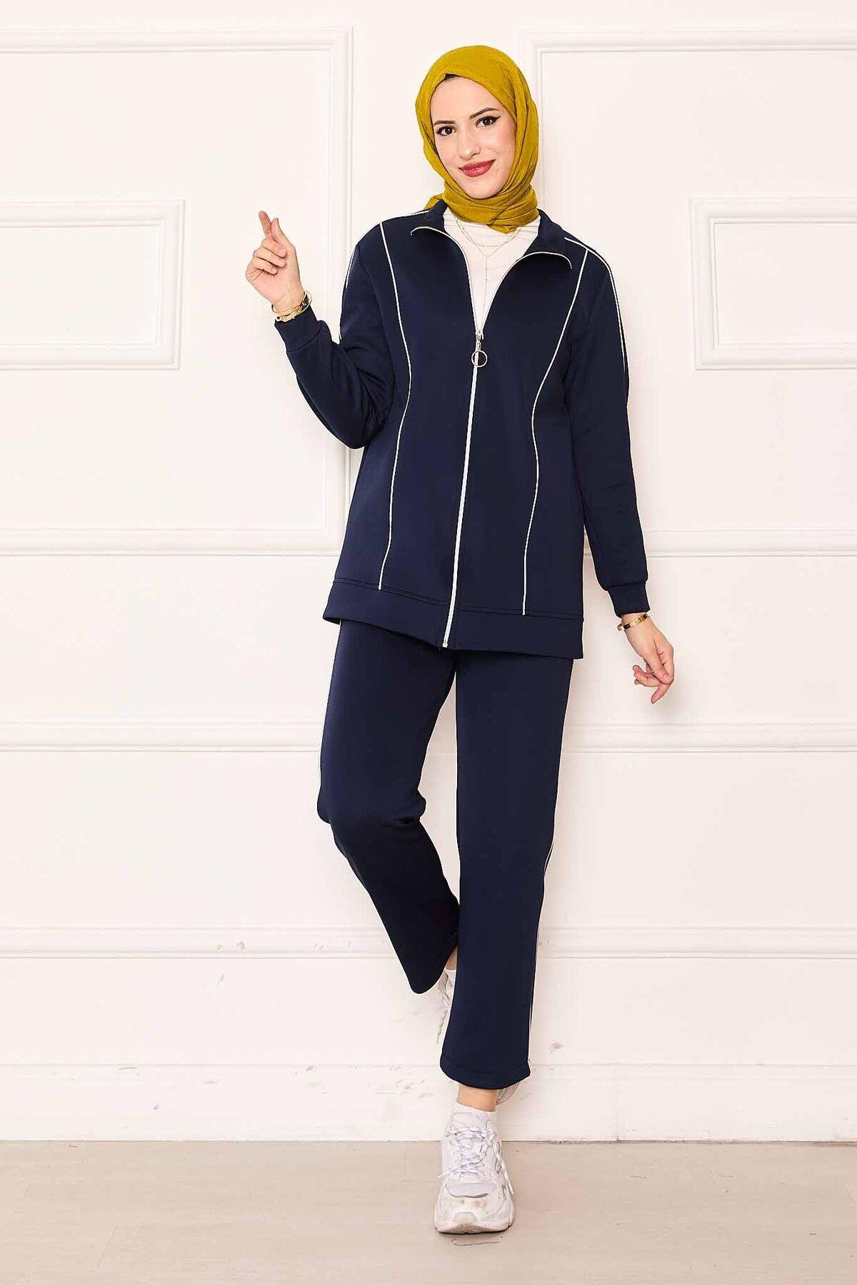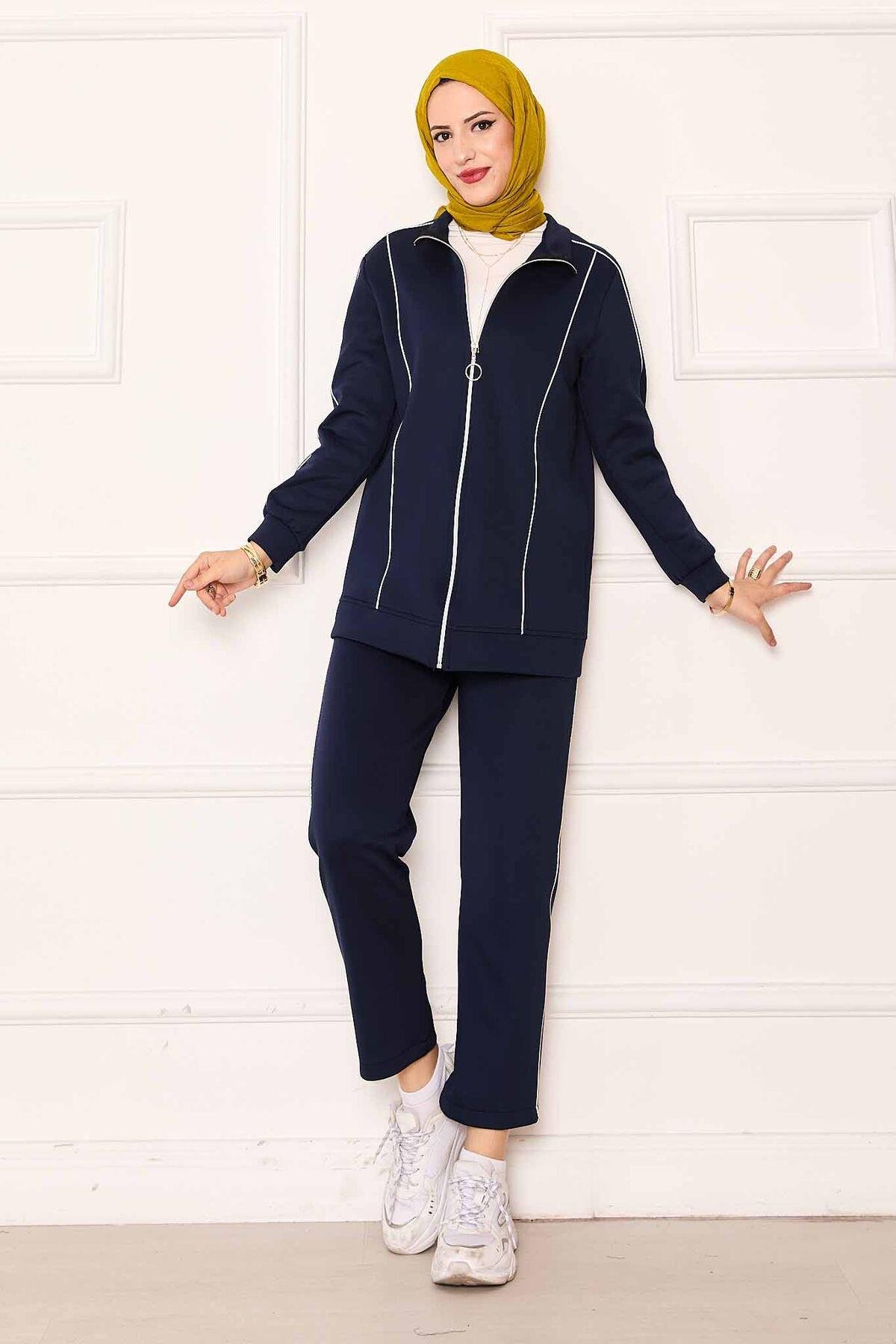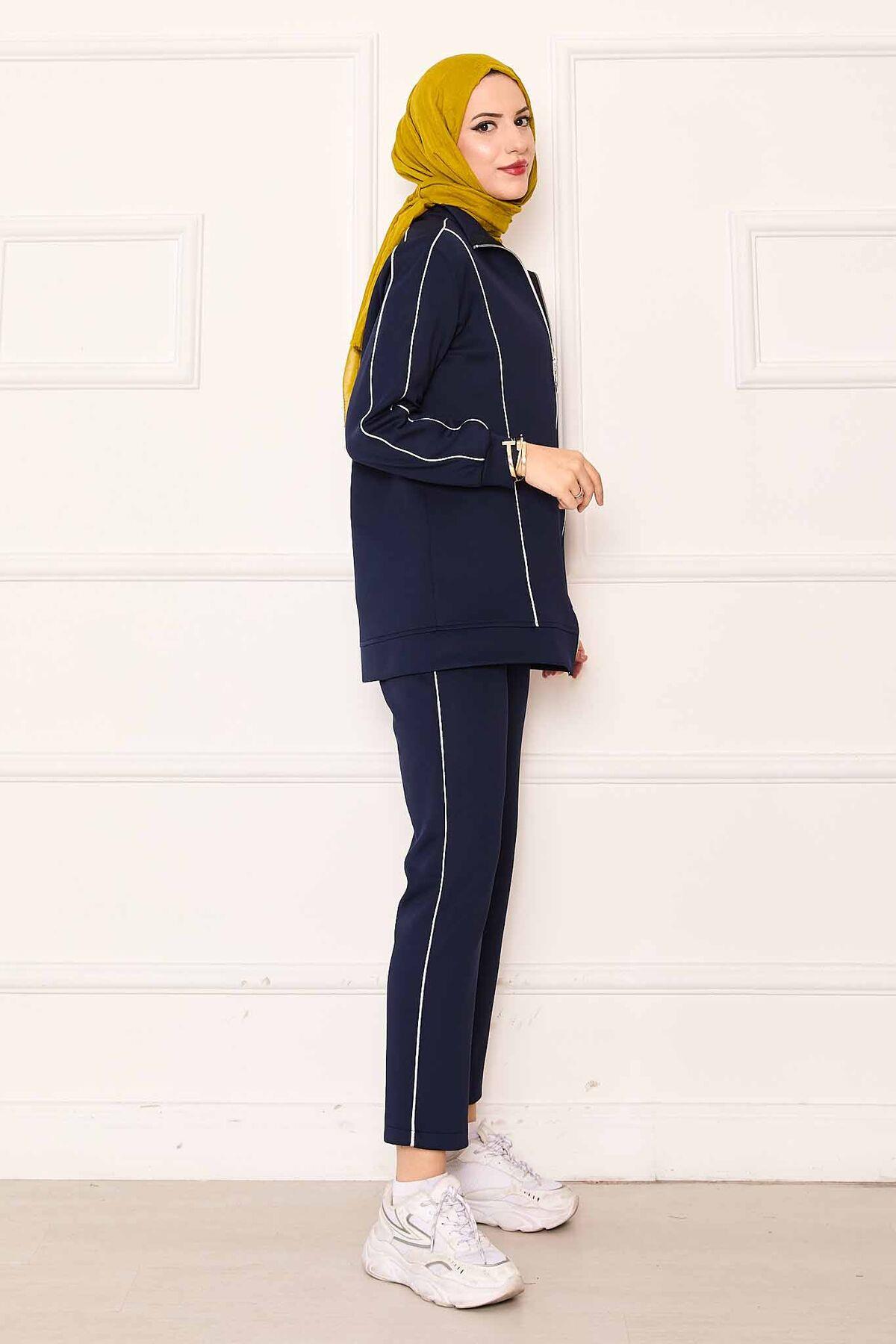 Piping Detailed 2 Piece Set Navy Blue (125M00621120R3338)