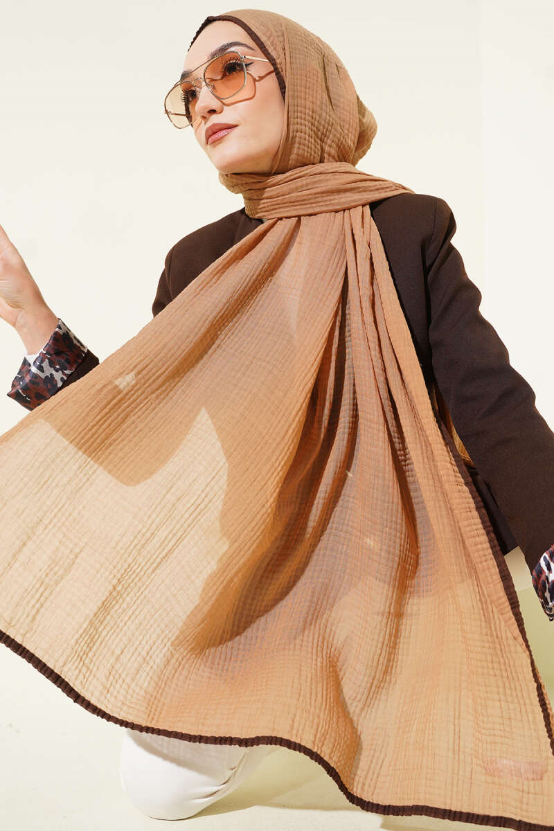 Piped Muslin Shawl Camel (0441-2568-703763)