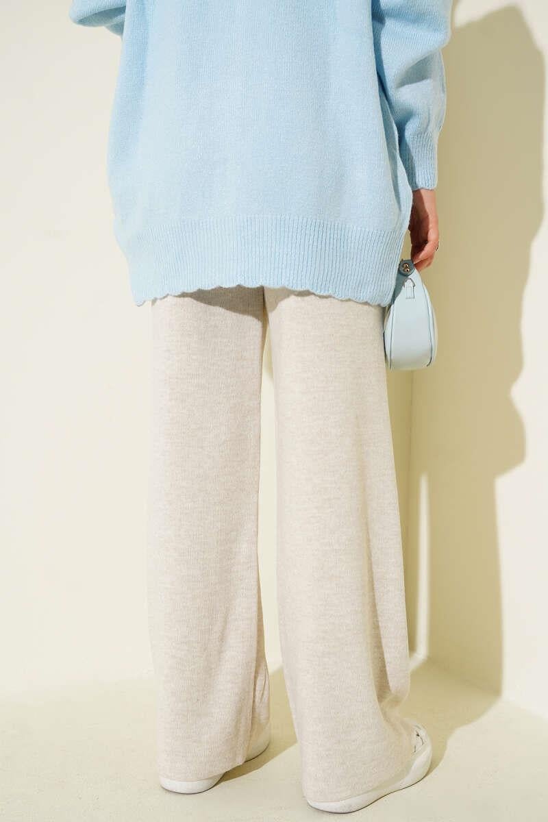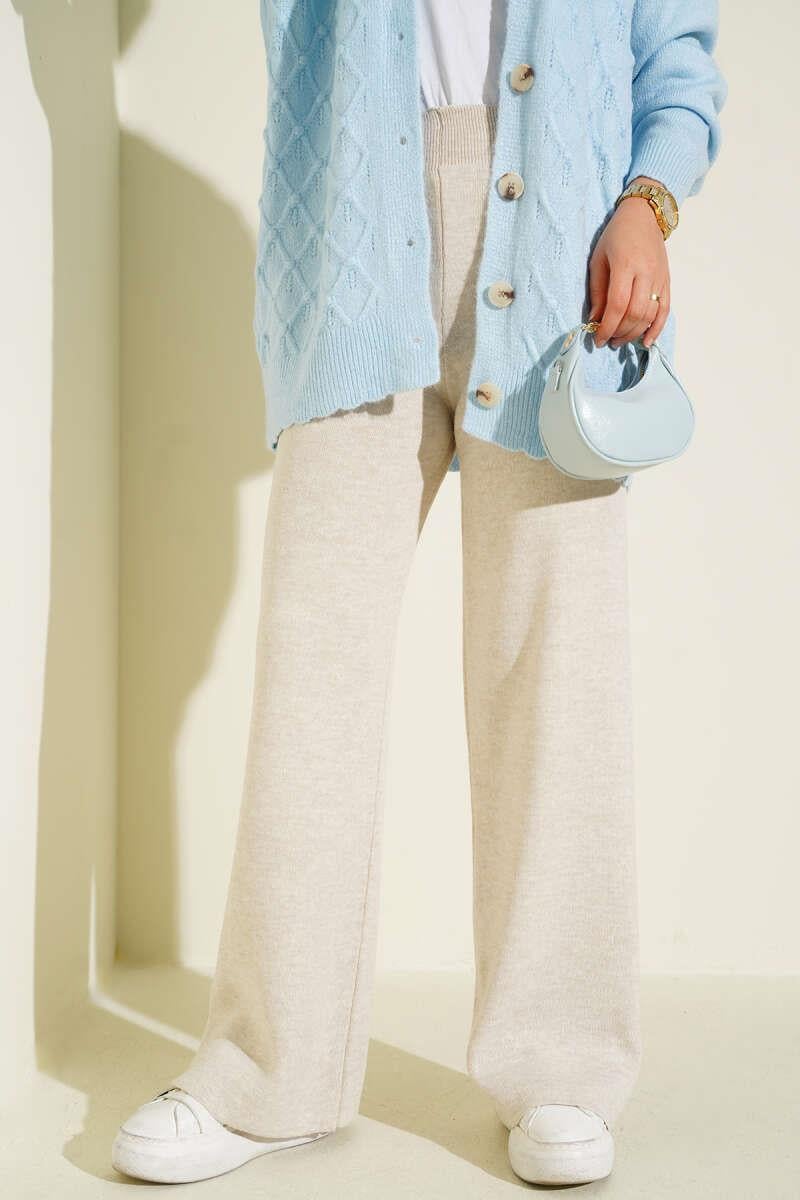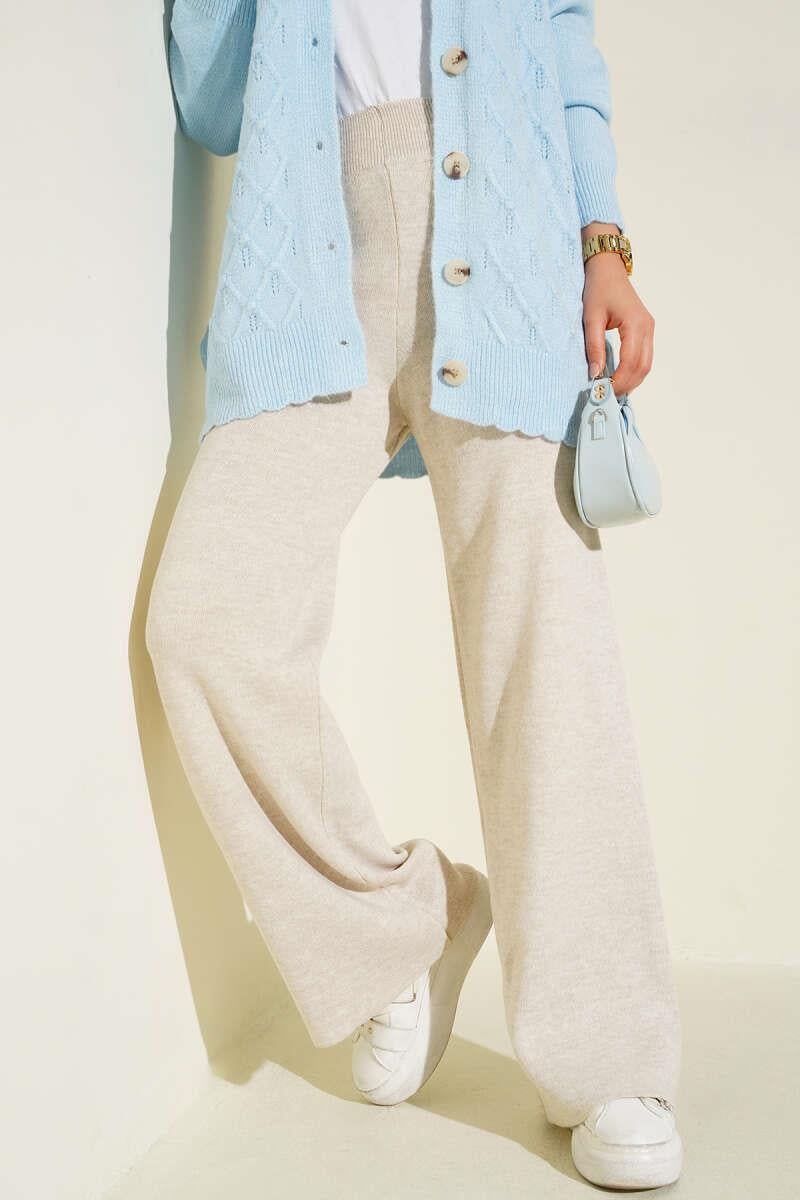 Wide Leg Knitted Trousers Beige (8374-9383-674128)