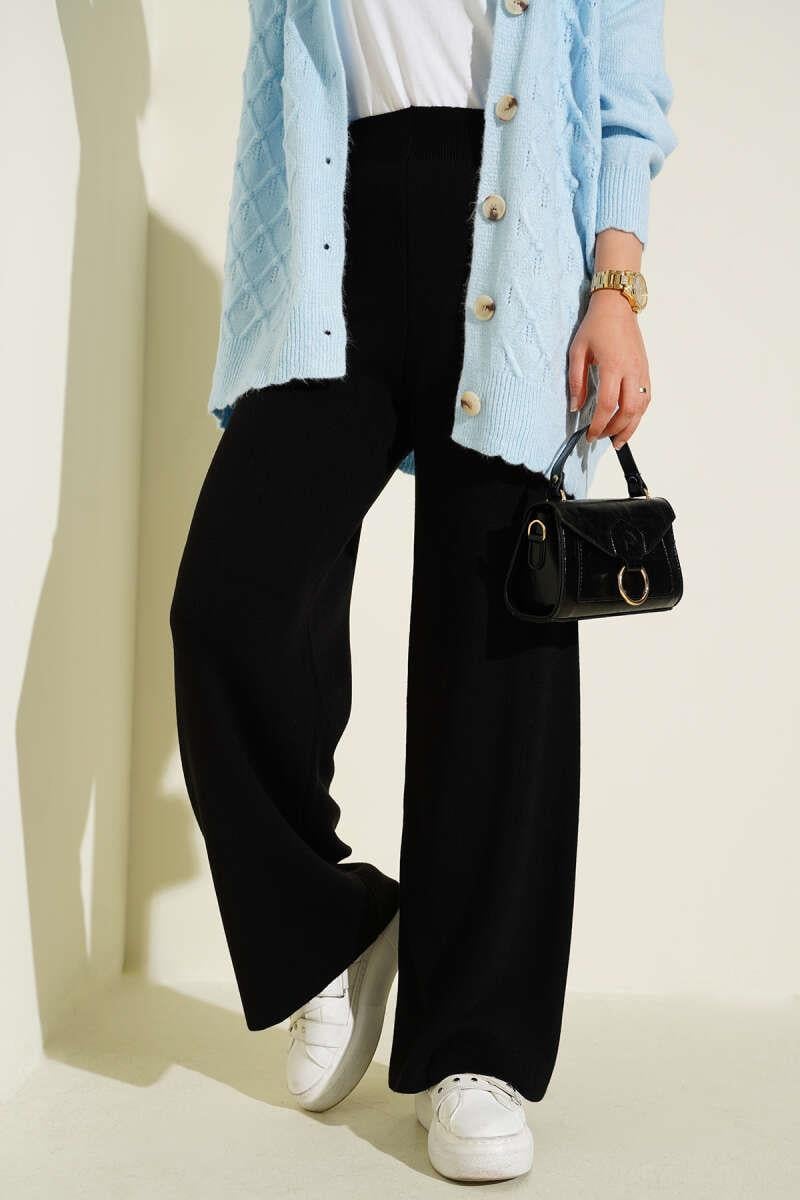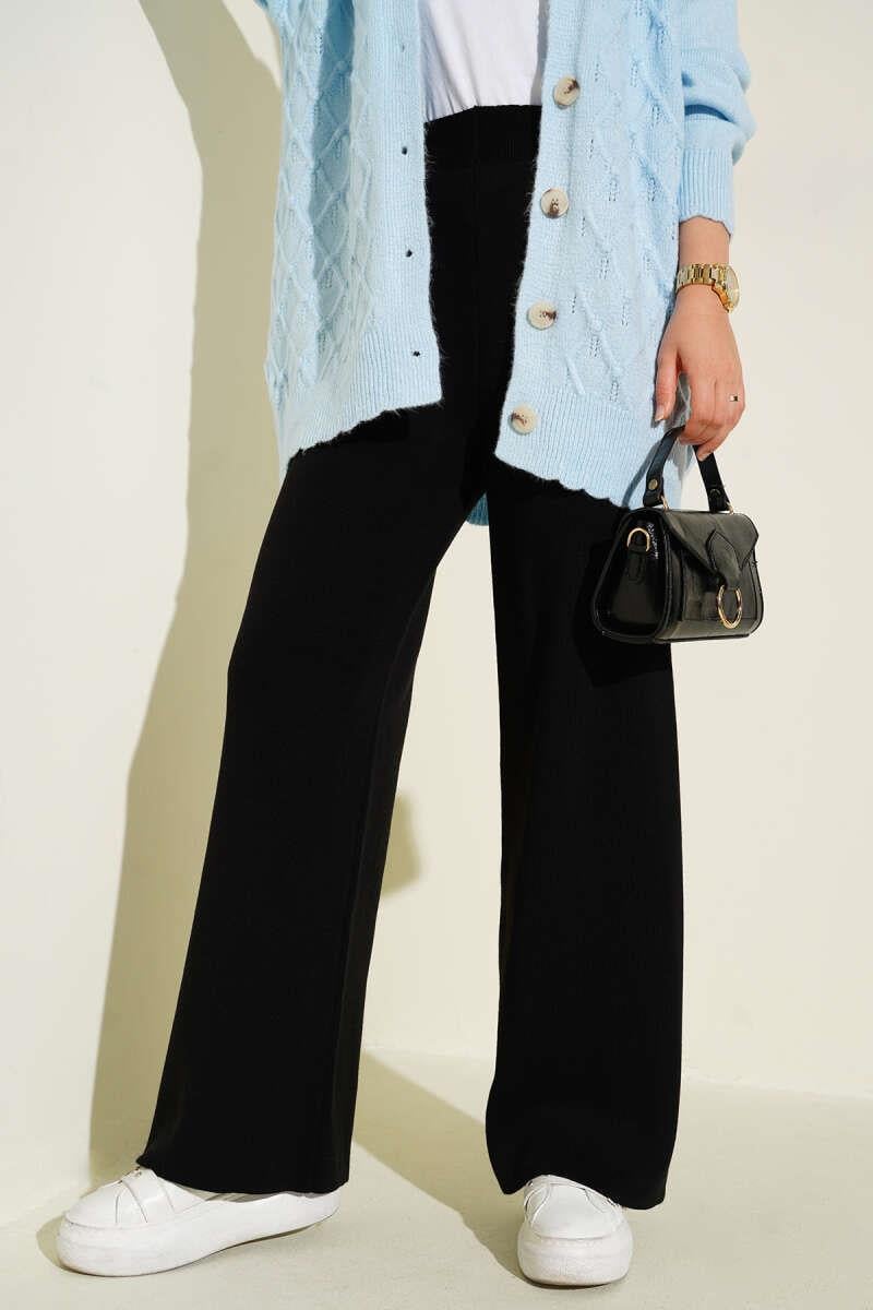Wide Leg Knitted Trousers Black (8374-9383-674132)