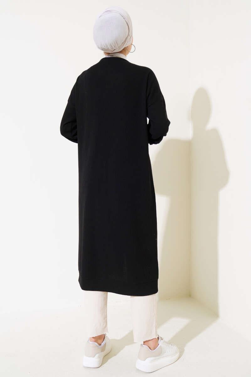 Buttoned Ribbed Long Cardigan Black (0319-1011-581317)