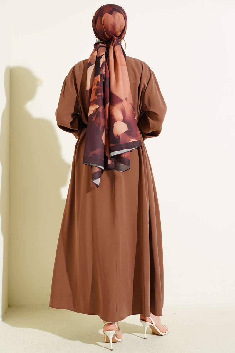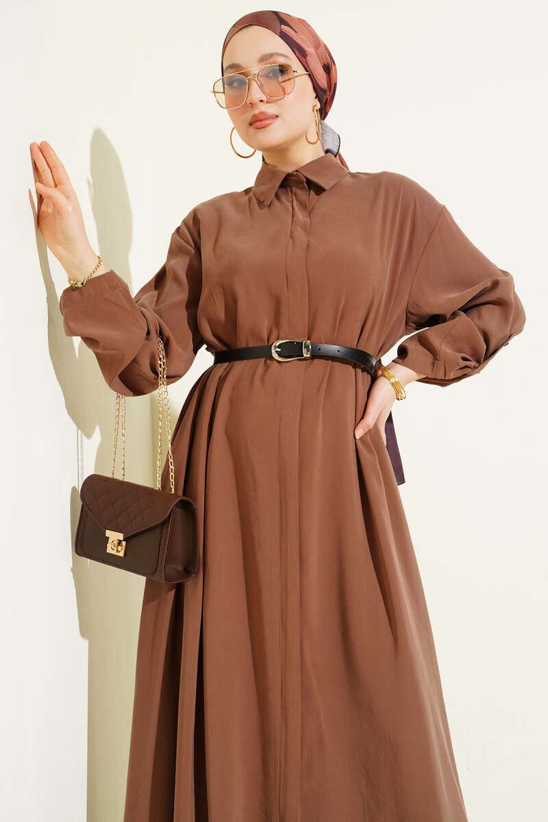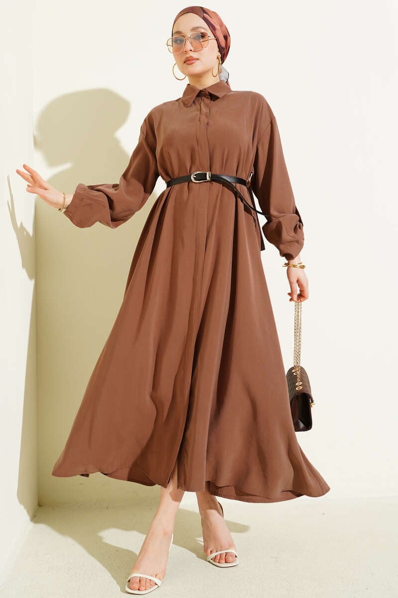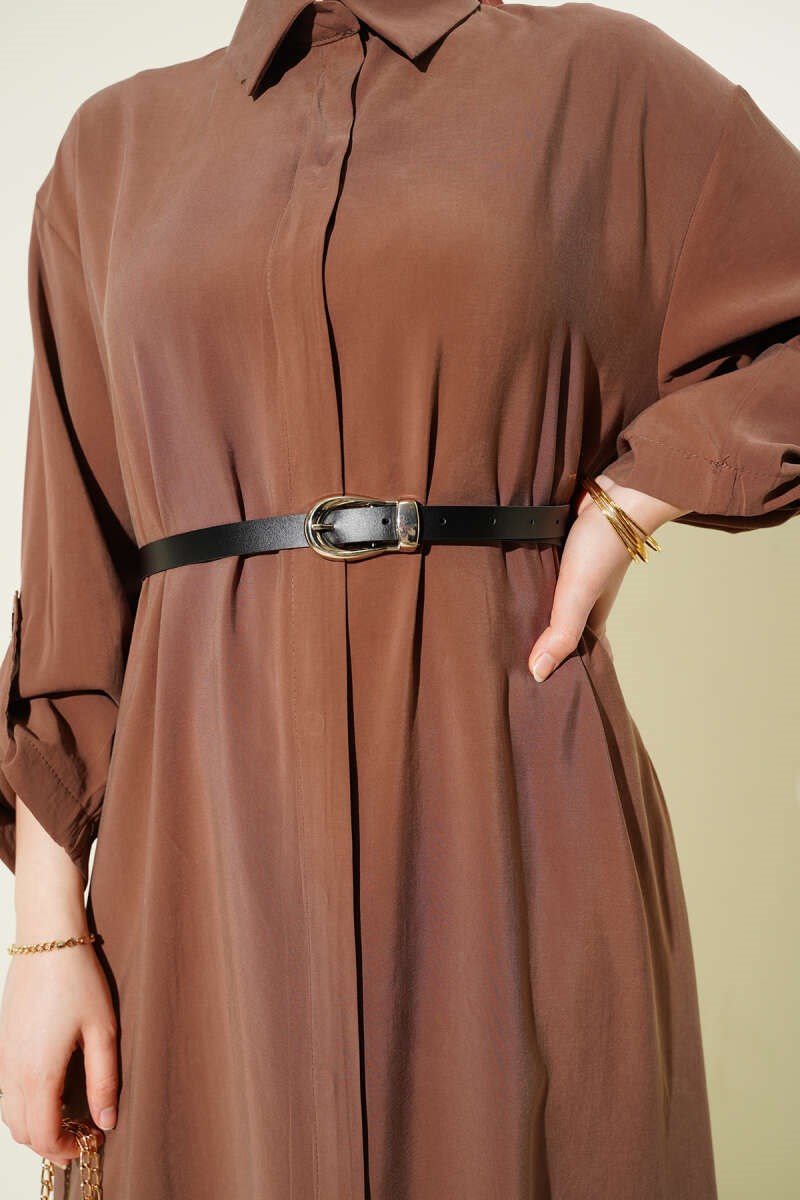 Full-Length Buttoned Belted Basic Dress Latte (0537-4441-10-722729)